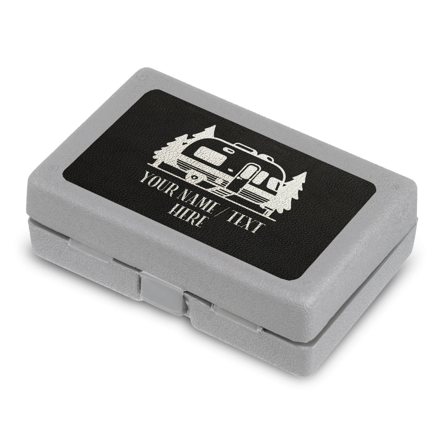 In a tri-fold hard shell case which measures 6" wide, 4" deep and 2" tall, this kit is the perfect size to keep in a desk, garage drawer, or anywhere else in the house. The snap closure keeps it securely closed to ensure the tools do not fall out. With the black faux leather on the outside engraved with your choice of personalization it will be easier to ensure it stays yours by being customized just for you!