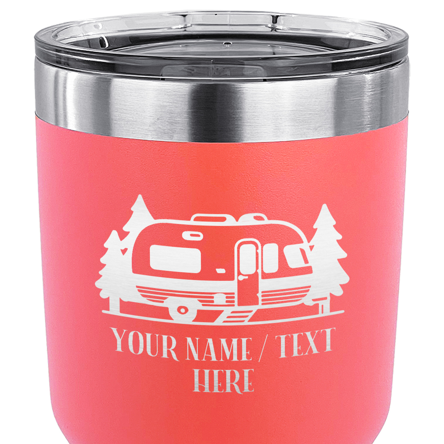 With the 5 colors - Black, Navy, Red, Pink and Coral, you are sure to find a cup to fit your personality. You can chose to engrave on the front or the front and back of the cup. Use our design studio to design your own cup and we laser engrave it for you.