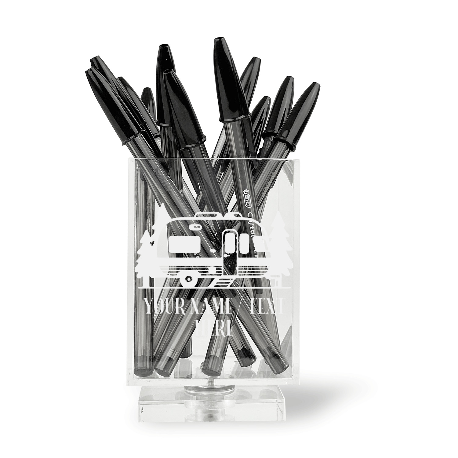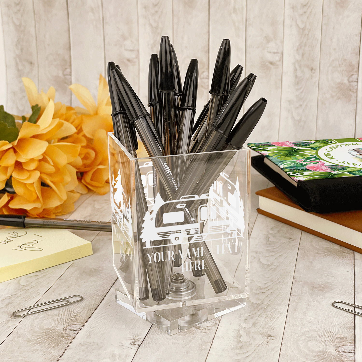 Add a great accessory to your desk with one of these acrylic pen holders. A great way to store your writing utensils, and personalized to suit your needs.