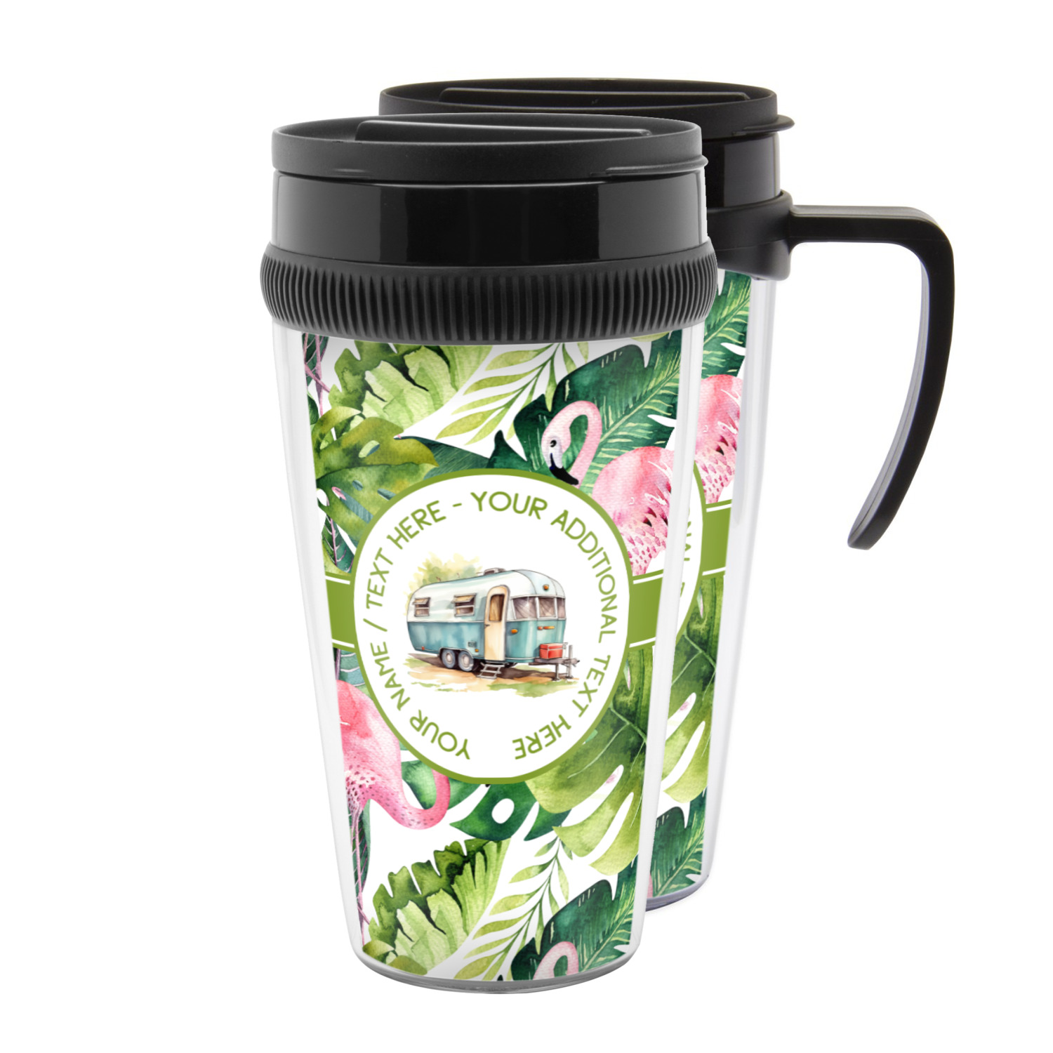Keep your drink secure while on your daily commute with one of our personalized travel mugs! These travel mugs will add a splash of color and creativity to your kitchen counter-top, car cup holder, office desk, or wherever you choose to place them! With these custom mugs, you'll never have to settle for a boring, run-of-the-mill travel mug.
