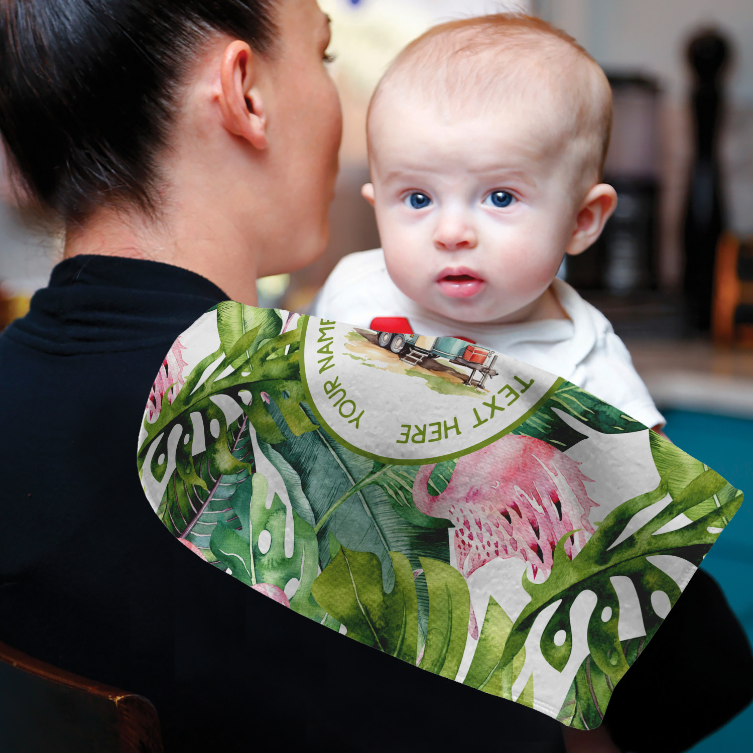 Choose your baby burp cloth from our two styles - Fleece (rectangular) or Microfiber Velour (peanut shape). The lightweight and absorbent design makes each burp cloth multipurpose; use them as a burp pad, a lap pad, a changing table, or a spare cloth to clean up any baby mess. Your customization is displayed across the front with baby-safe ink to ensure extra comfort with a white backing.