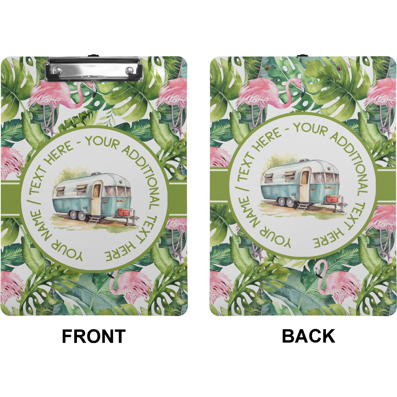 These custom clipboards are made from a strong hardboard and are coated with a glossy finish that accentuates the colors of your design. Alongside a retractable hook at its top, these decorative clipboards also feature sturdy clips to secure several sheets of paper. We sell these clipboards in two separate sizes. Our letter size measures at 12.5" L x 9" W, while our legal clipboard is approximately 15.5" L x 9" W. On both models, your personalization is printed on both sides of this clipboard and can be customized individually.