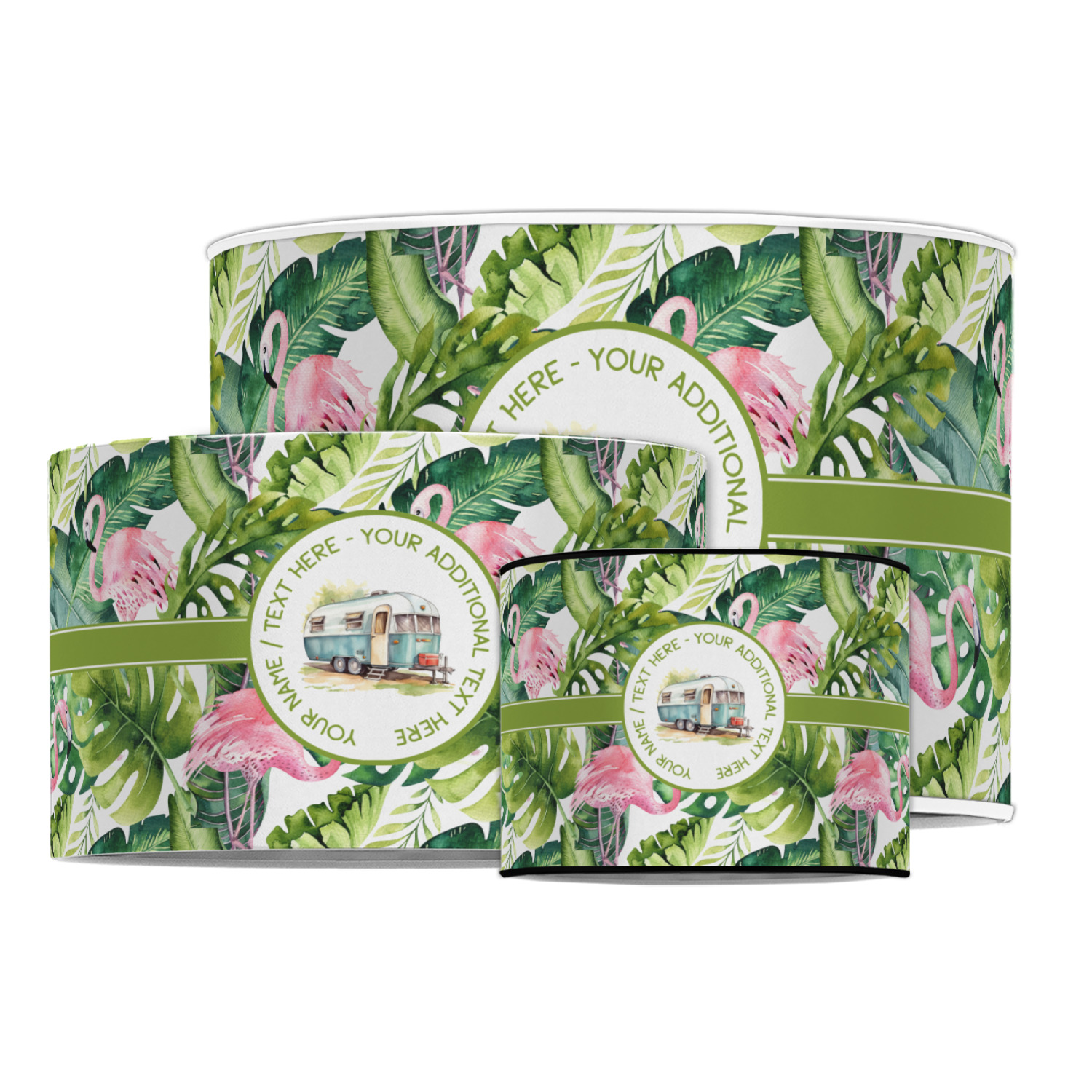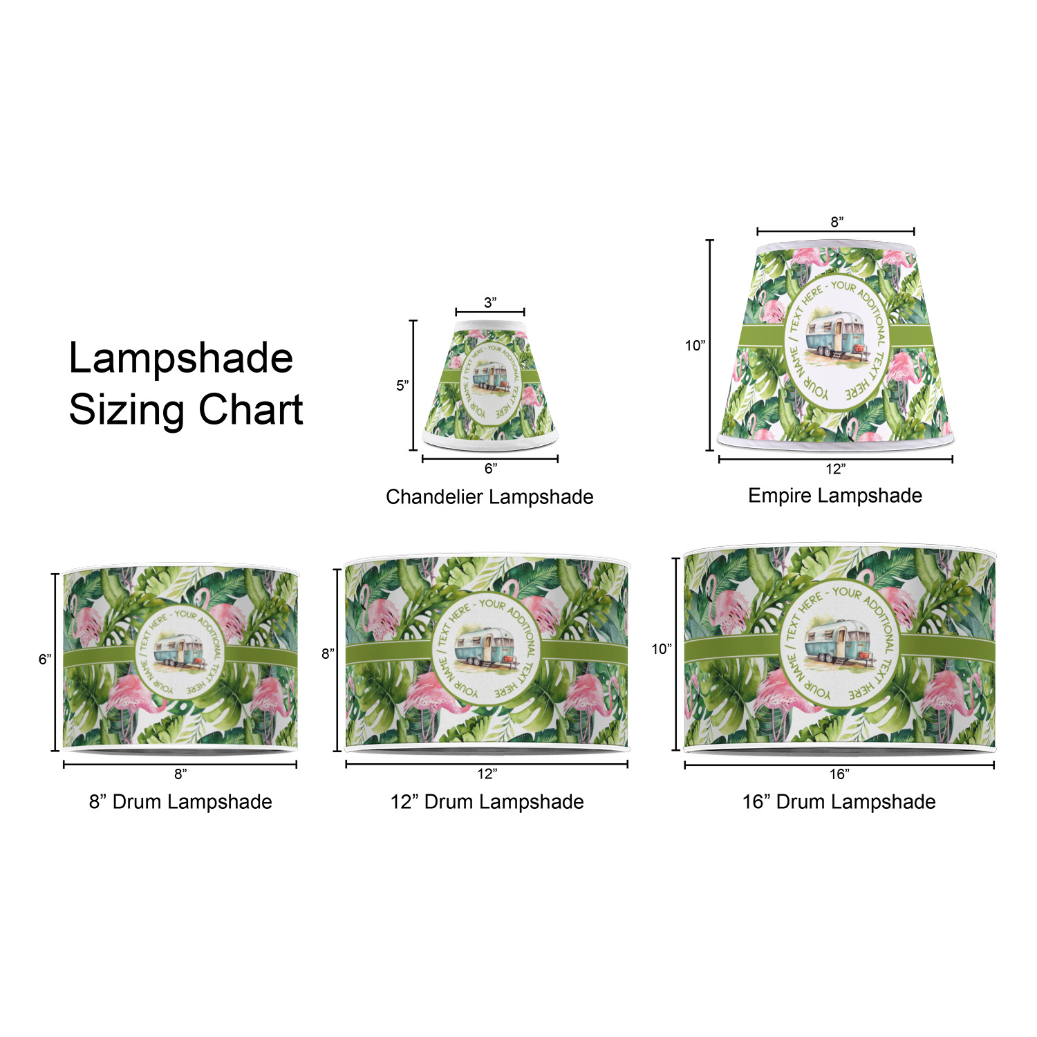 Our customized lamp shades also come in 3 different sizes: 8", 12" and 16", measuring at 8" in diameter by 6" tall, 12" in diameter by 8" tall, and 16" in diameter by 10" tall, respectively.