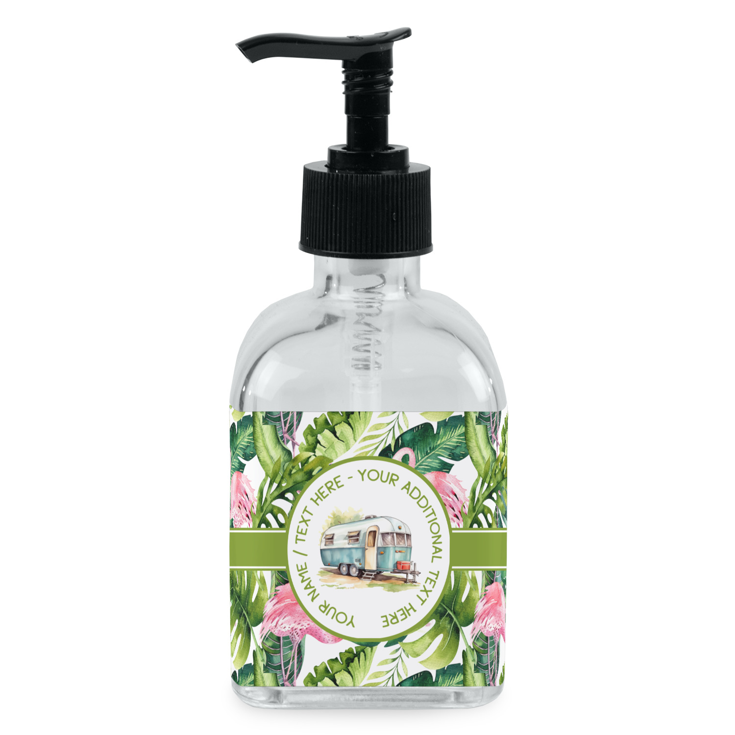 Crafted from a high-quality glass, these soap dispensers and lotion dispensers are durable and robust, while still looking elegant. They are sold with black pumps. Each soap dispenser pump measures at 6.5 by 2.25 inches. On these soap pumps, we display your customized design on a personalized vinyl adhesive on three sides. That way, you can judge how much liquid is in the bottles from the back.