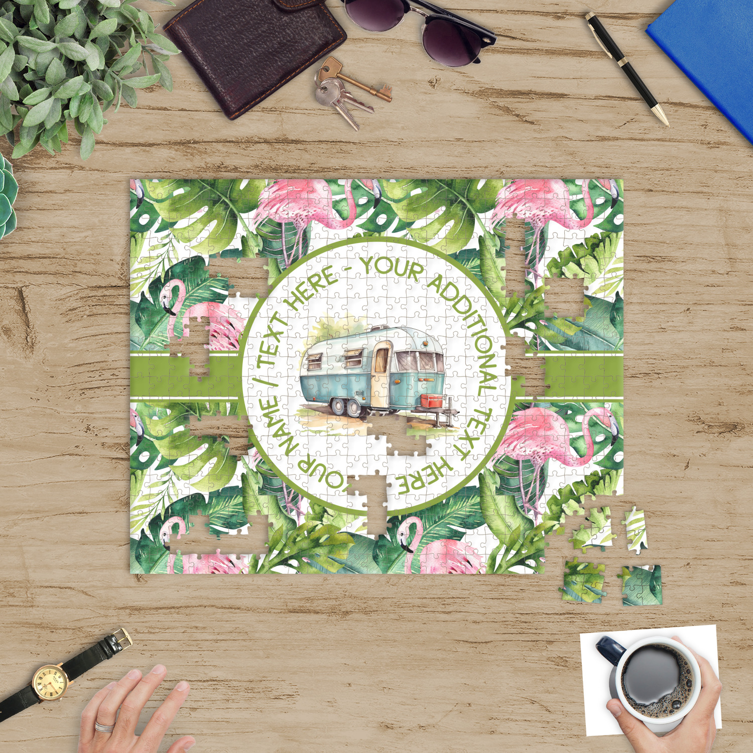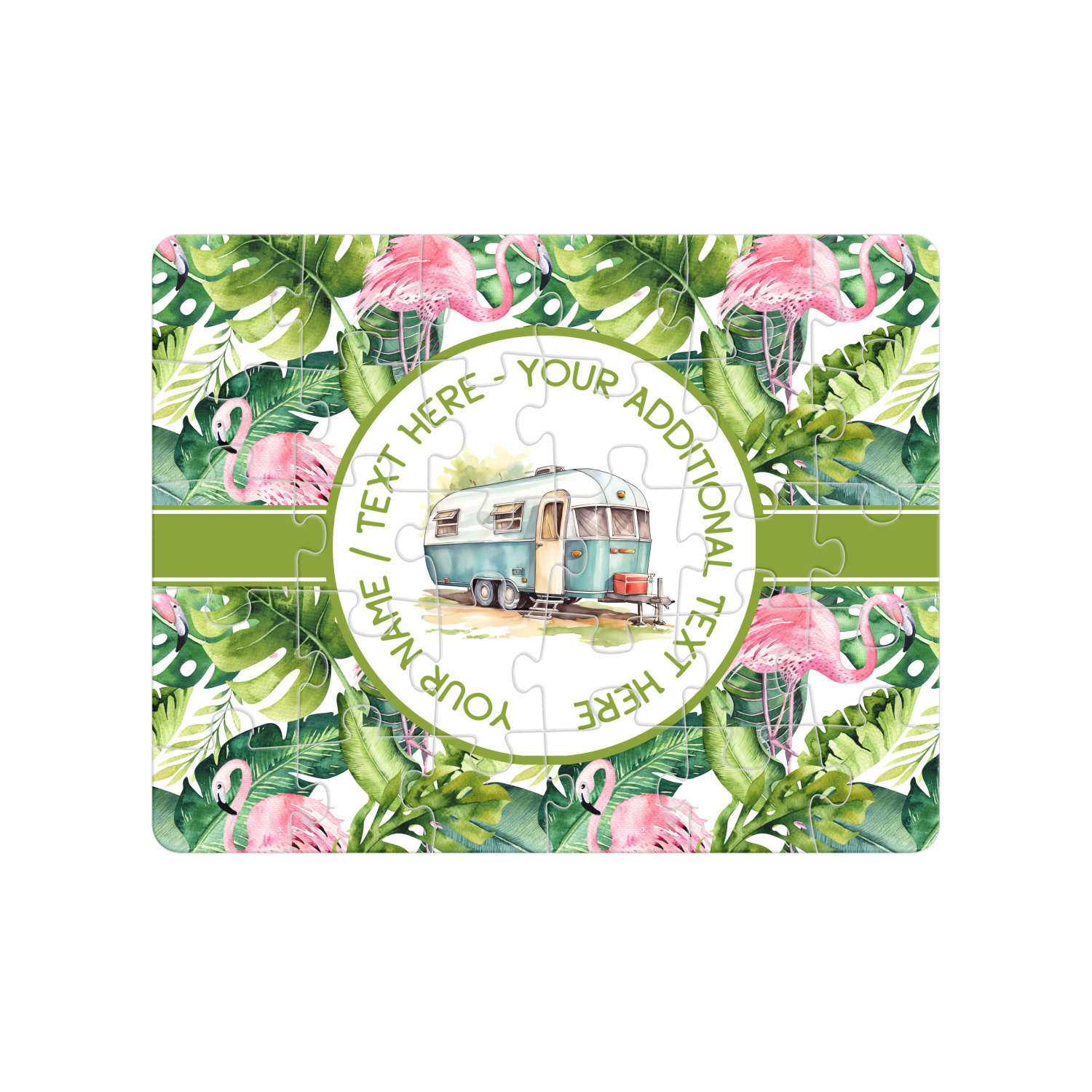 Depending on the look you are trying to achieve, you can add; a thematic pattern or background, with a photo in a frame and text or personalization to your puzzle. Basically if you can imagine it, you can design it!