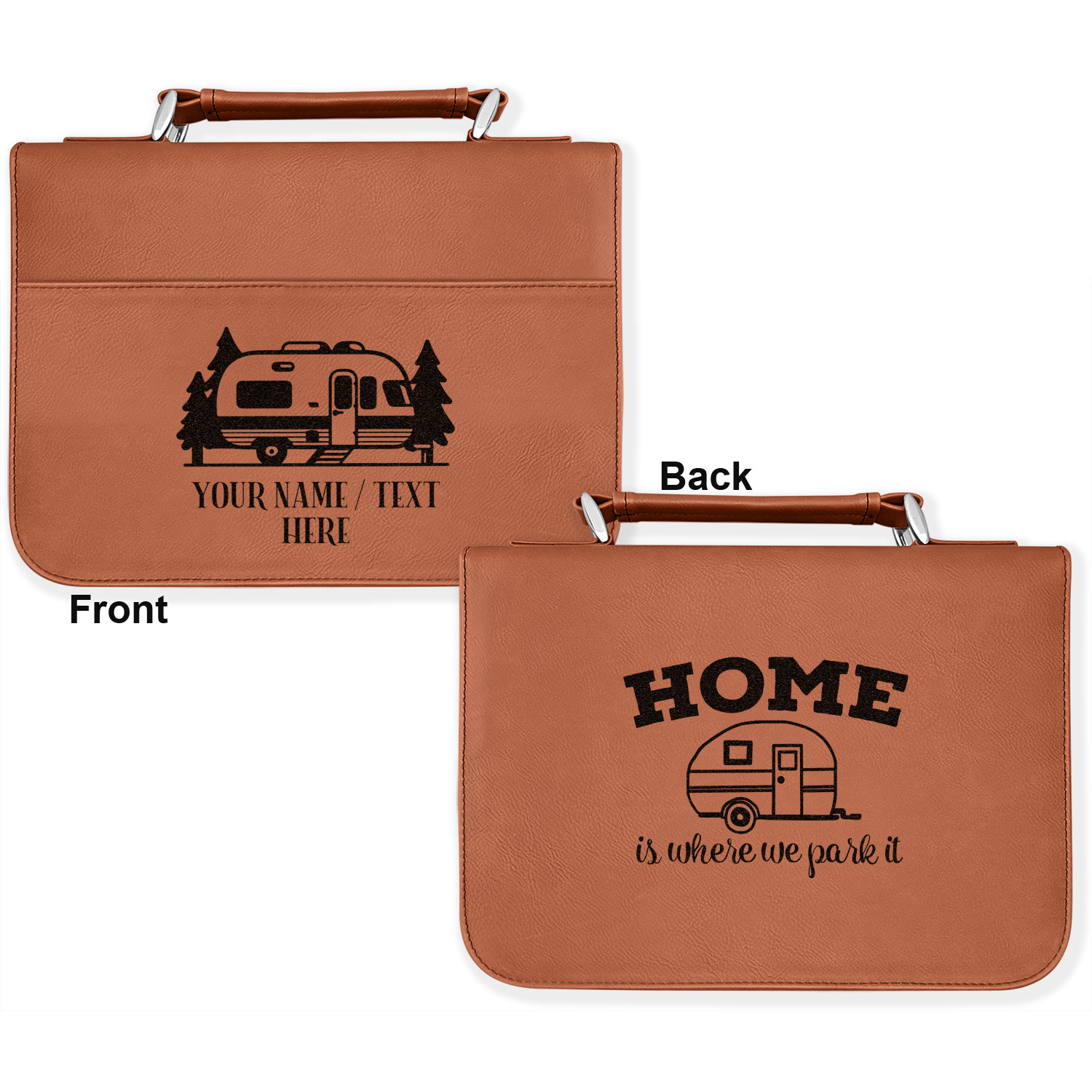 We offer these custom book covers in several variations. First, we offer two different sizes. Our small can accommodate books of up to 8.5" x 6" x 2". The larger size can fit books up to 10" x 7.125" x 2". Both of these sizes can then be customized according to your preference; you can either choose to laser engrave a design on the front and back, or solely the front.