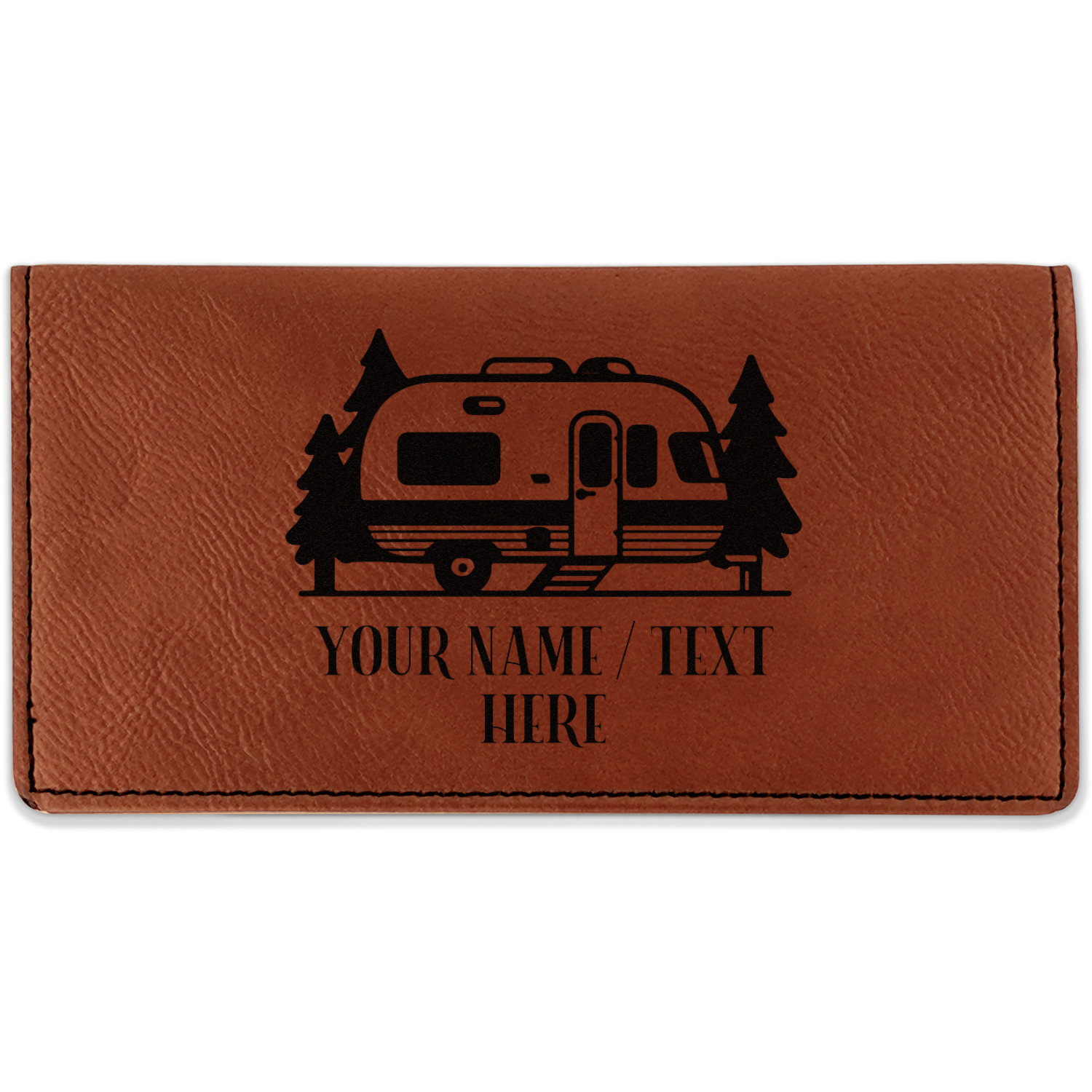 Go into our design center to start personalizing. Your checkbook cover will be laser engraved, making the graphic or text a black color. Choose a fun saying, monogram, or font to go on your checkbook cover. You have the opportunity to do it double or single sided.