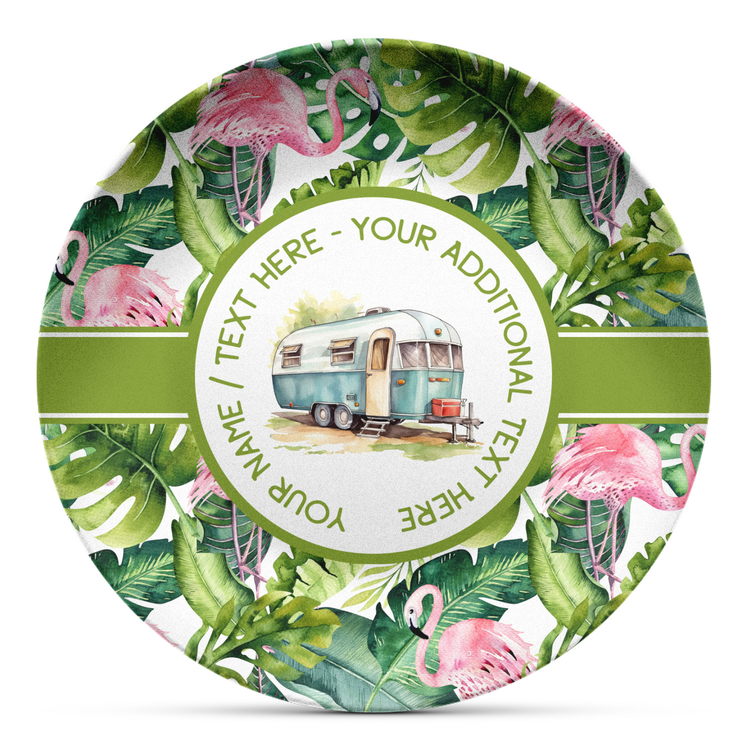 These plastic plates have the versatility, durability, and weight of melamine plates but are instead are made from a melamine-free composite, thermo-set, polymer plastic. These plates are made right here, in the USA, without the use of harmful chemicals, such as BPAs, formaldehyde, or DEHPs. Our elegant plastic plates can even withstand temperatures of up to 250 degrees Fahrenheit, for up to 60 minutes. The entire face of the plate exhibits your personalization in bright, vibrant color, and the plate's diameter measures at 10" long.