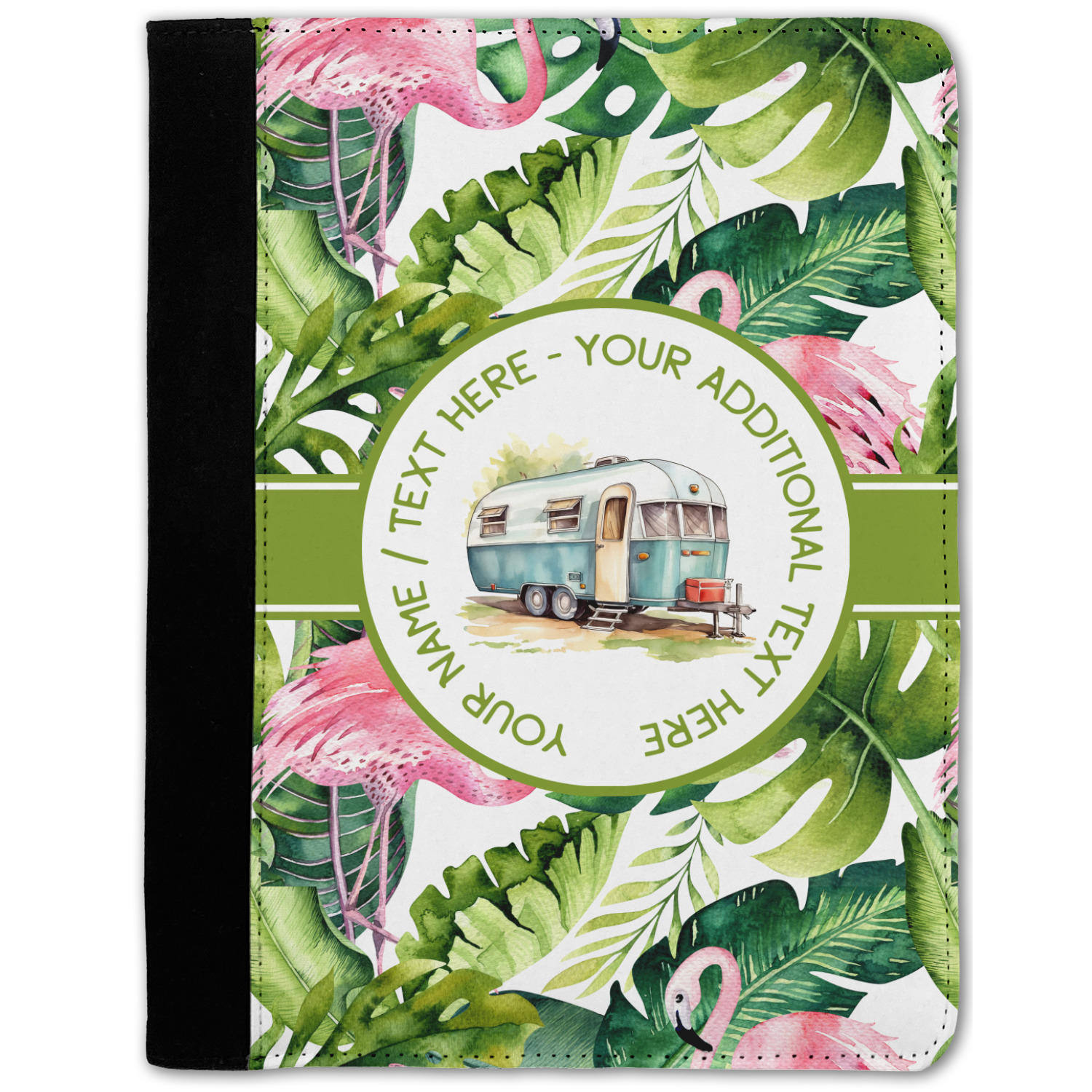 These personalized padfolios are made from a black, polyester microfiber and features a standard, 50-page notepad. However, these black padfolios can accommodate a pad with up to 100 pages. This model also features a slot pocket for any loose sheets of paper, small pockets for business cards, and an elastic band to secure a pen. We print your personalization across the front of this notepad portfolio in bright, vibrant color. These padfolios come in 2 sizes, Medium - approximately 10.25" x 8" for 5" x 8" paper and Large - approximately 12.5" x 8.5" for 8.5" x 11" paper.