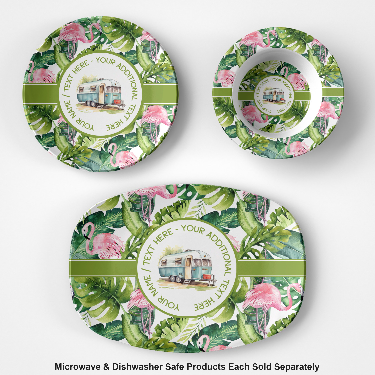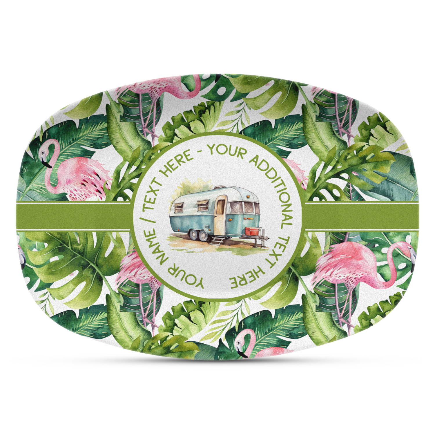 These serving platters are made from a composite, thermo-set, polymer plastic that gives it the versatility, durability, and weight of a melamine platter, without any of the downsides of melamine. These personalized platters, can withstand temperatures up to 250 degrees Fahrenheit, for up to 60 minutes. No harmful chemicals, such as BPA, formaldehyde, and DEHPs were used in the manufacturing of this product. This large serving platter measures at 14" x 10.25", and is spacious enough to hold any of your appetizers or bite-sized desserts. The platter exhibits your personalization across the entirety of its front.