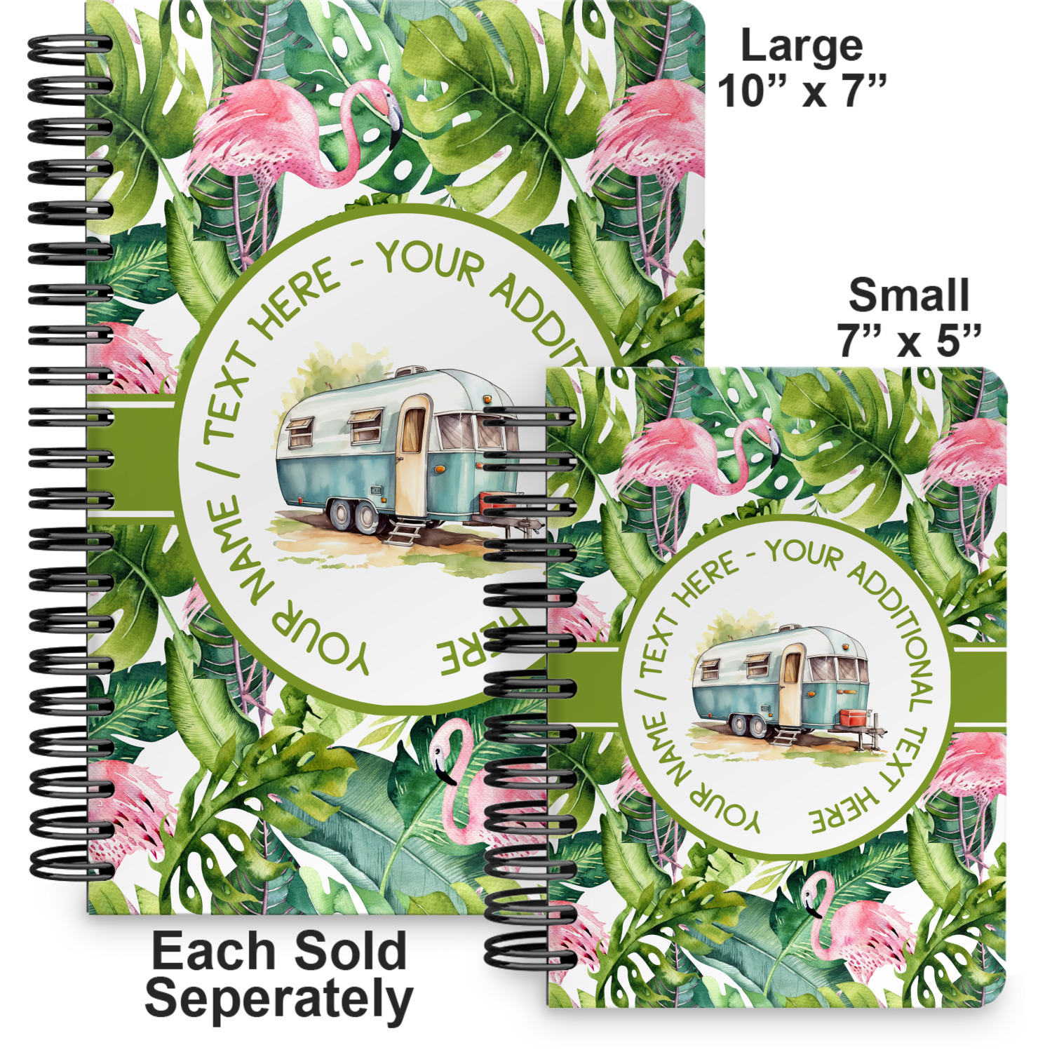 This spiral journal is available in two sizes. The first size is more suitable for a tote or purse and measures at 7" x 5". The second option is a bit larger, at 10" x 7", and is a better fit for a briefcase or backpack.