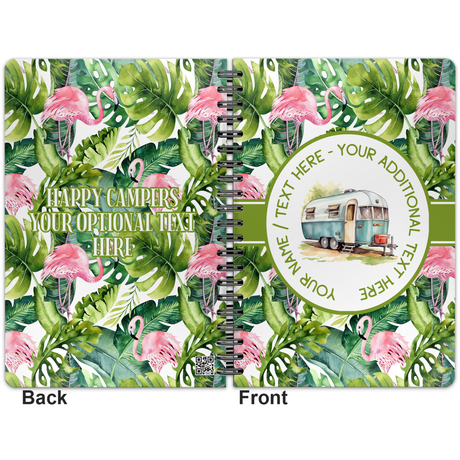 This spiral notebook includes 75 sheets of thick, ruled paper. The front and back of this custom notebook is made of a robust, laminate, plastic covering. We print your personalization on these two panels, underneath a glossy finish, which emphasizes the colors of your design. The two panels and the sheets of paper are held together by a sturdy, black coil. The paper within your bound notebook is perforated for easy, clean tearing.