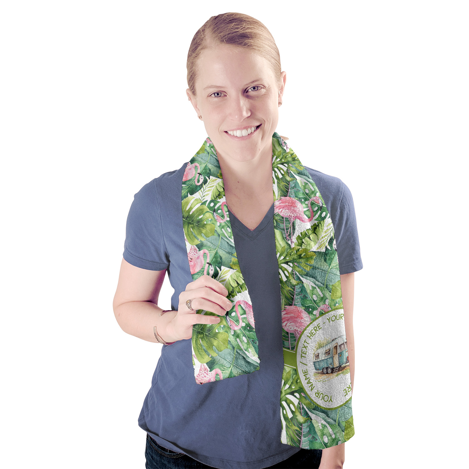These towels are 44" x 12", which are the perfect size for hanging around your neck on the treadmill or wiping your brow after a hard workout. They are full-print towels with your very own design printed right on the front! They are perfect for soaking up moisture and are quite soft against your skin.