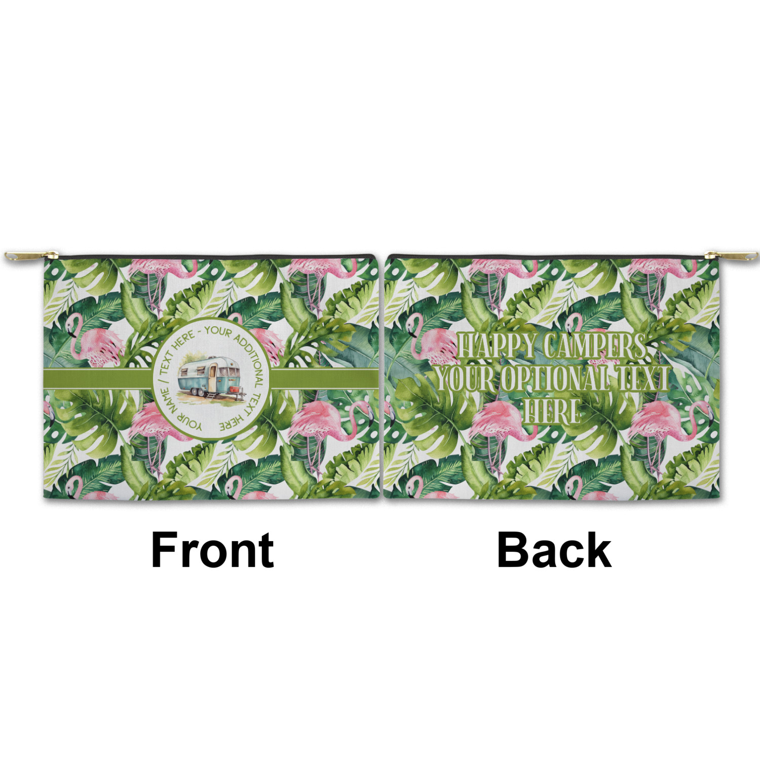 You can design both the front and the back of the pouch - same design, two complementary designs or two totally different designs - the choice is yours! We offer many different personalization styles i.e. name, name & initial, monograms - so the choice to personalize is also yours.