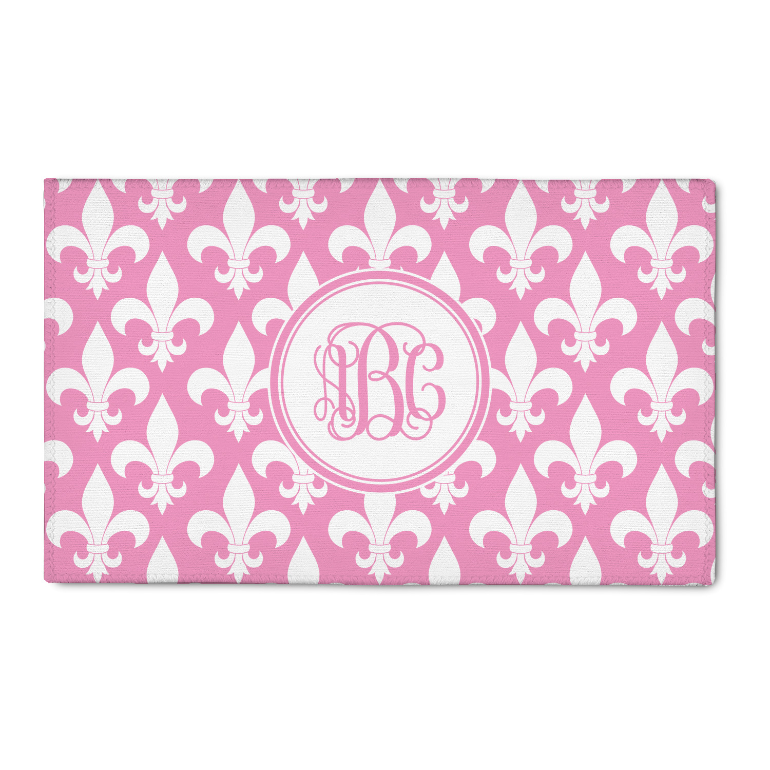 This simple, yet elegant design is fit for any royal, especially the princesses and queens! It has fleur-de-lis in the background with a round label and an interlocking monogram. We offer you a choice of background colors. I think this would look fantastic in purple!