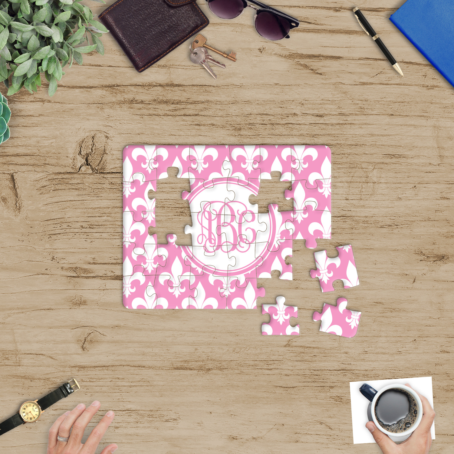 Depending on the look you are trying to achieve, you can add; a thematic pattern or background, with a photo in a frame and text or personalization to your puzzle. Basically if you can imagine it, you can design it!