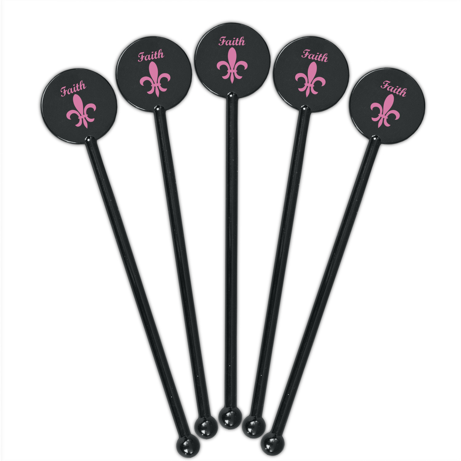 Shape + Symbol Designs for 5.5" Round Plastic Stir Sticks - Black - Double-Sided