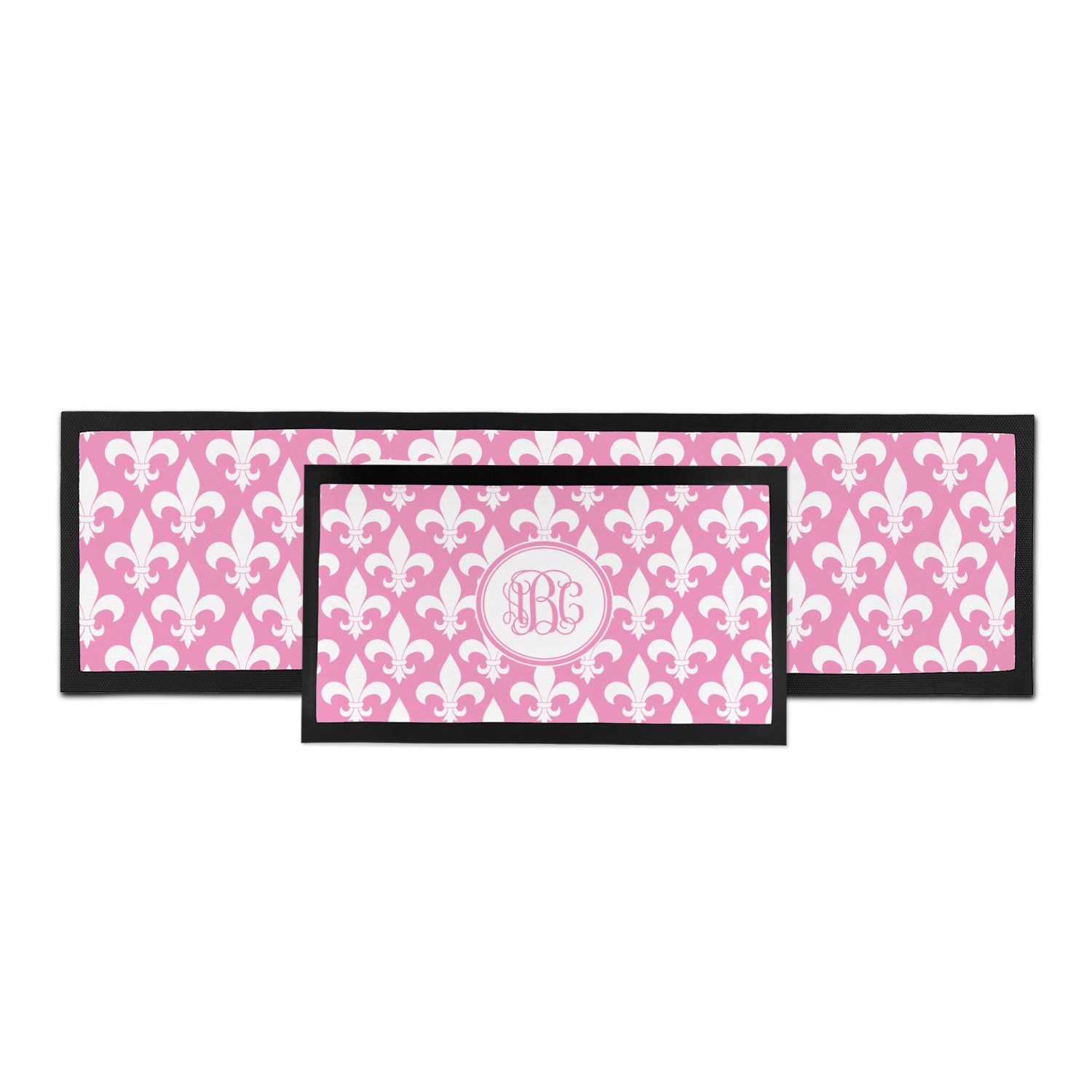 This simple, yet elegant design is fit for any royal, especially the princesses and queens! It has fleur-de-lis in the background with a round label and an interlocking monogram. We offer you a choice of background colors. I think this would look fantastic in purple!
