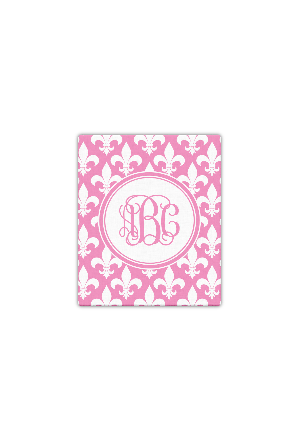 This simple, yet elegant design is fit for any royal, especially the princesses and queens! It has fleur-de-lis in the background with a round label and an interlocking monogram. We offer you a choice of background colors. I think this would look fantastic in purple!