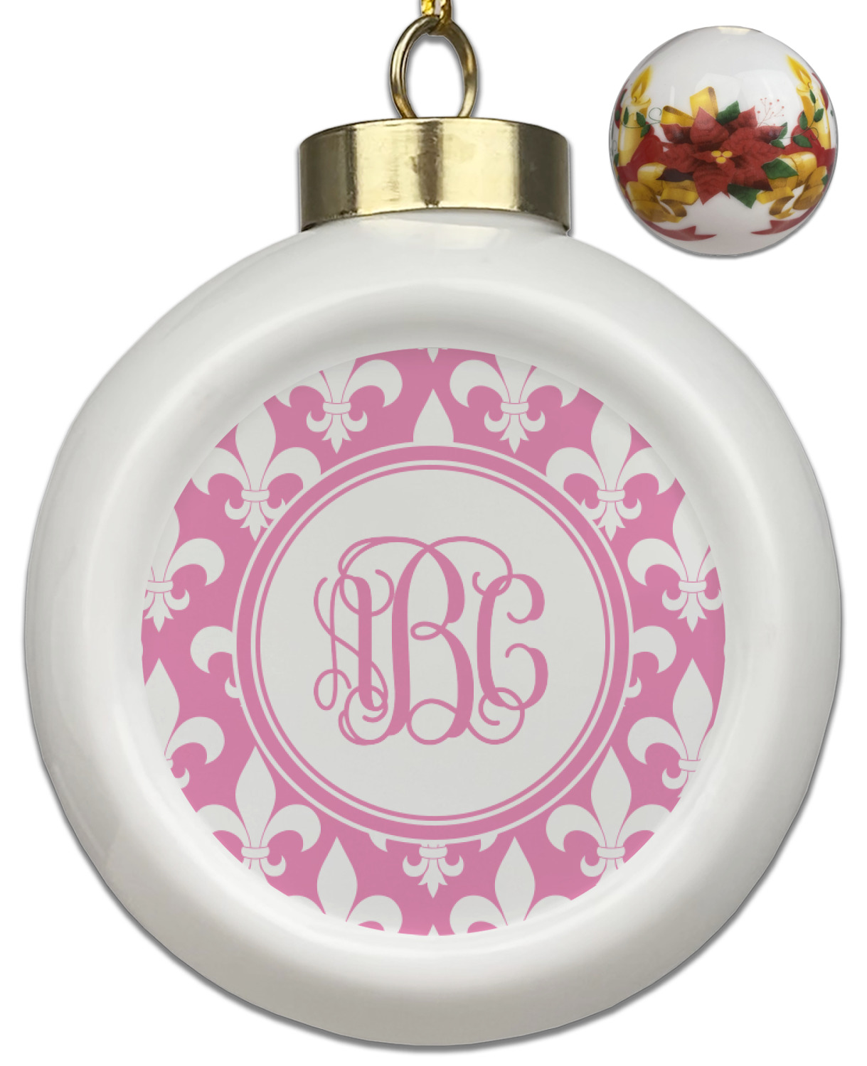 Our Christmas ornaments are a unique ceramic ball shape with a twist as it has a flat face to display your custom design! Select from one of our two design types - Christmas Tree or Poinsettia Garland - to adorn the curved back of your personal design. Each ornament measures 3H x 2.5W x 2D accompanied with a gold string accent for finishing touches to hang on your beautiful Christmas tree!