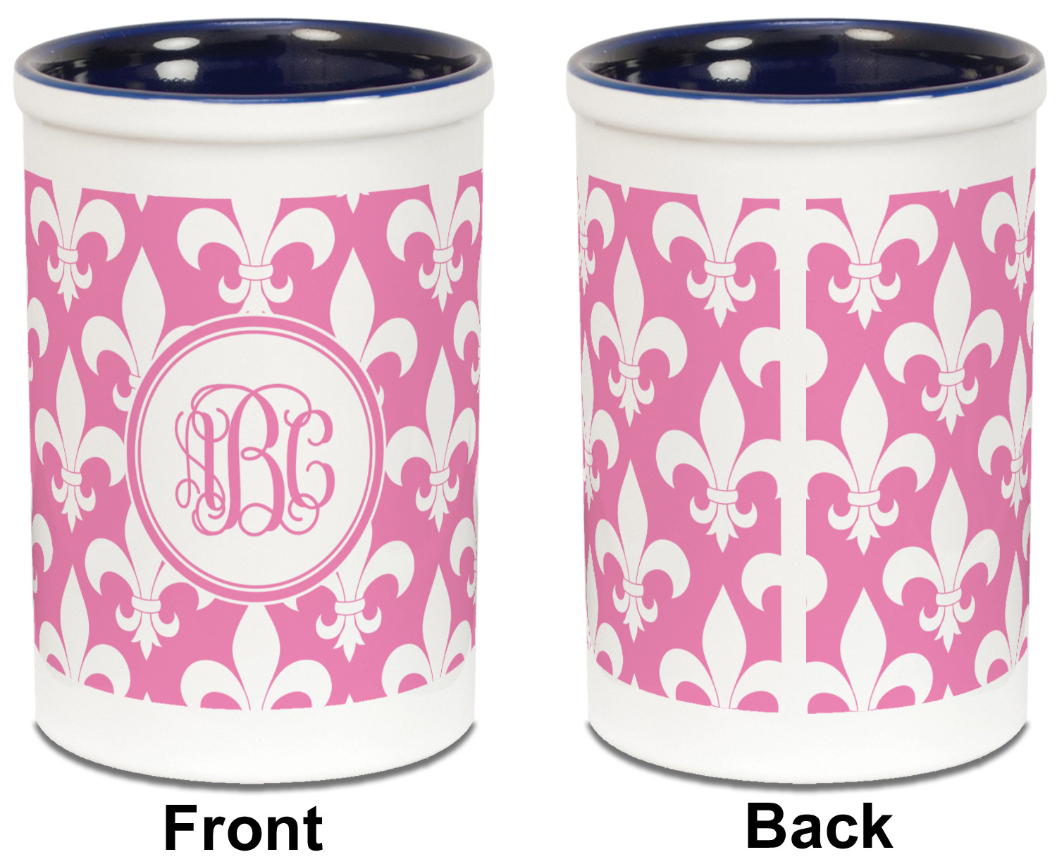 This simple, yet elegant design is fit for any royal, especially the princesses and queens! It has fleur-de-lis in the background with a round label and an interlocking monogram. We offer you a choice of background colors. I think this would look fantastic in purple!