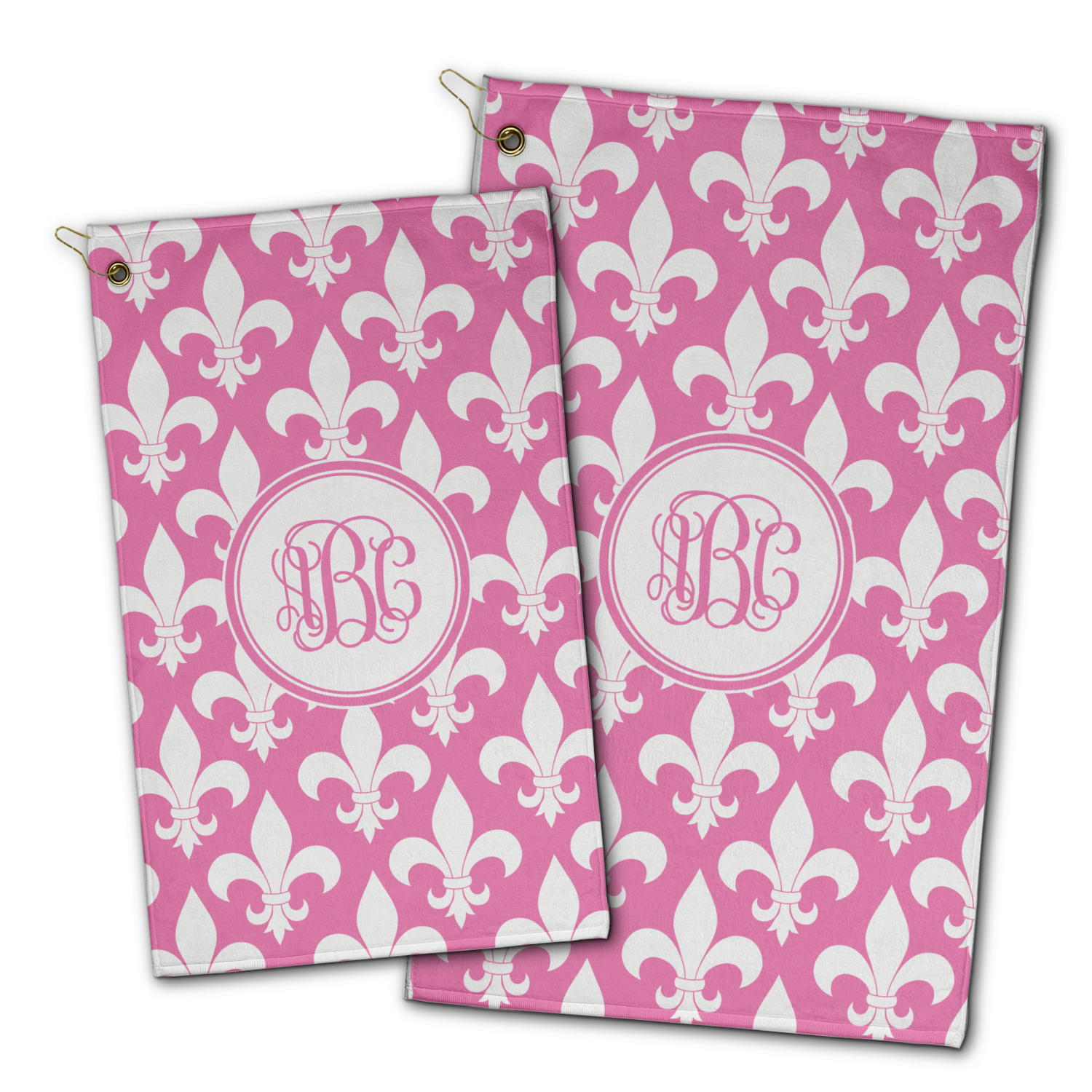 These golf towels are come in 2 sizes: Small: 11"x 18" and Large: 15" x 25" in dimension.