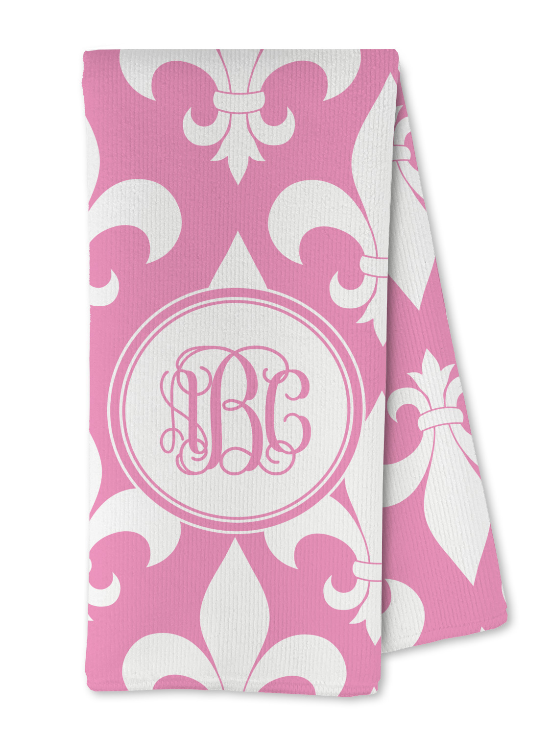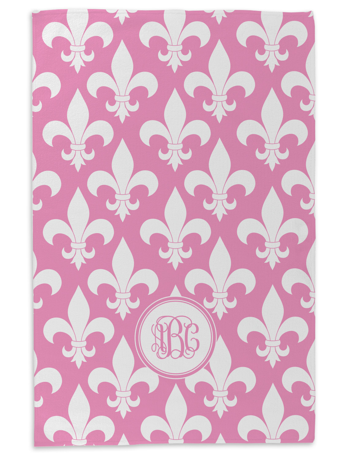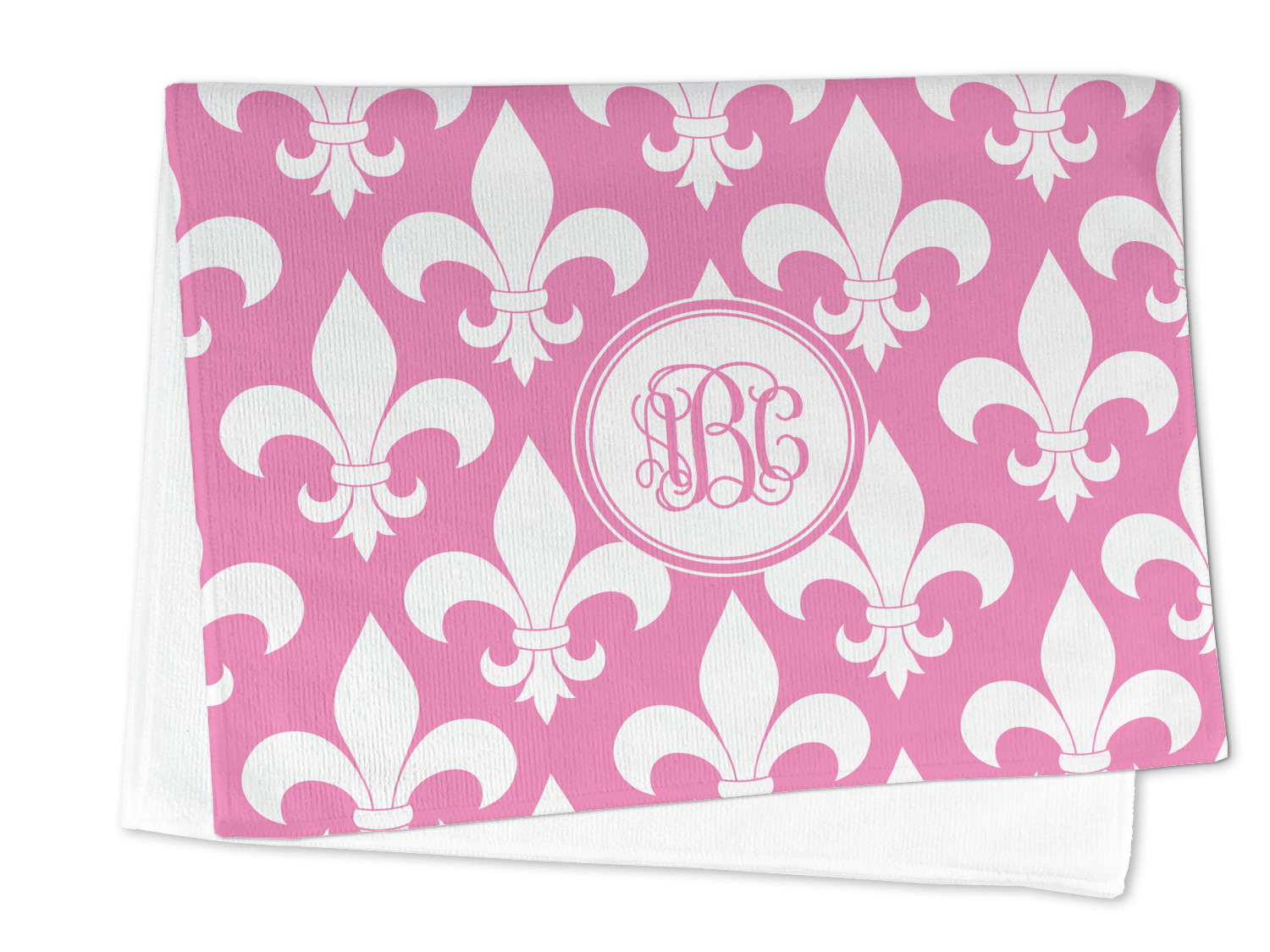 This simple, yet elegant design is fit for any royal, especially the princesses and queens! It has fleur-de-lis in the background with a round label and an interlocking monogram. We offer you a choice of background colors. I think this would look fantastic in purple!