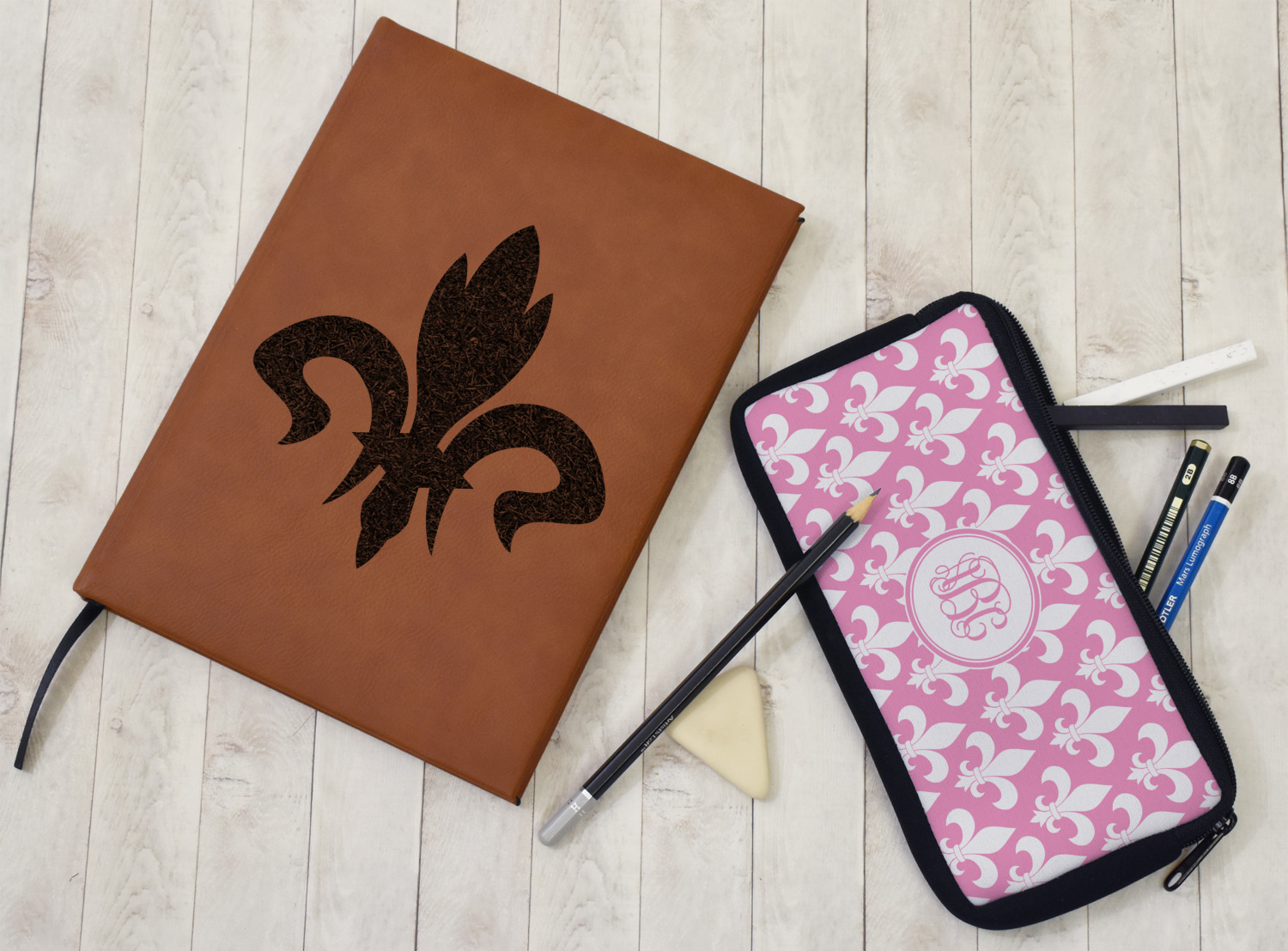 The faux leather covers are a rich cognac / rawhide color and can be customized with your design. From a simple name or monogram or a logo to a detailed mandala - the choice for customization & personalization is truly yours. Customize one of our designs or upload your own.