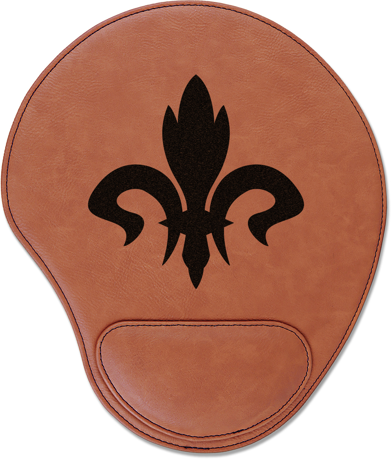In a rounded shape, this mouse pad is made of a luxurious, cognac-colored leatherette. The nature of this material allows your mouse to glide smoothly across its surface. Strong stitching lines the edges to guarantee stability and strength. As added support for tired wrists, your personalized mouse pad features a supportive wrist rest at its bottom. This model measures at 10.25" x 9", while its wrist pad is approximately 5" x 2.75", with a thickness of 0.75". Your personalized design is laser engraved into the front face of this mouse pad.