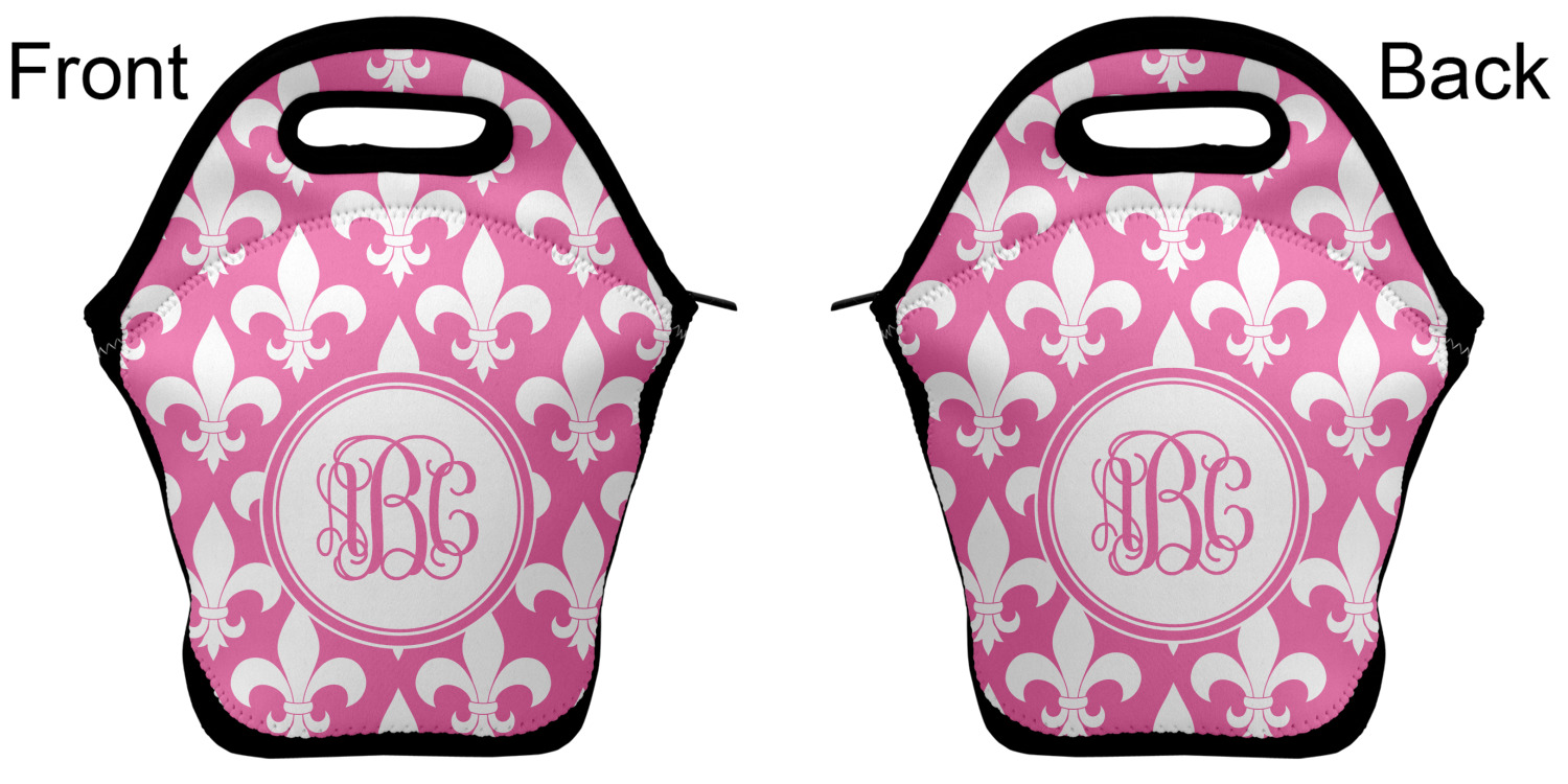 Our personalized lunch bags are made from a strong neoprene, and secure with a zipper closure that lines the top of the bag.The edges of the neoprene are sewn together with a heavy duty stitch, adding to the durability of the bag. The is accompanied by a reinforced handle at its top, for the easy transport of your lunch. We display your personalization across both the front and back of this neoprene lunch bag, while the remaining sides are a sleek black in color. Each bag measures at 13.5 inches tall, and 11.5 inches wide.