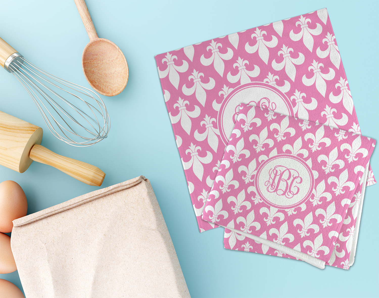 This simple, yet elegant design is fit for any royal, especially the princesses and queens! It has fleur-de-lis in the background with a round label and an interlocking monogram. We offer you a choice of background colors. I think this would look fantastic in purple!