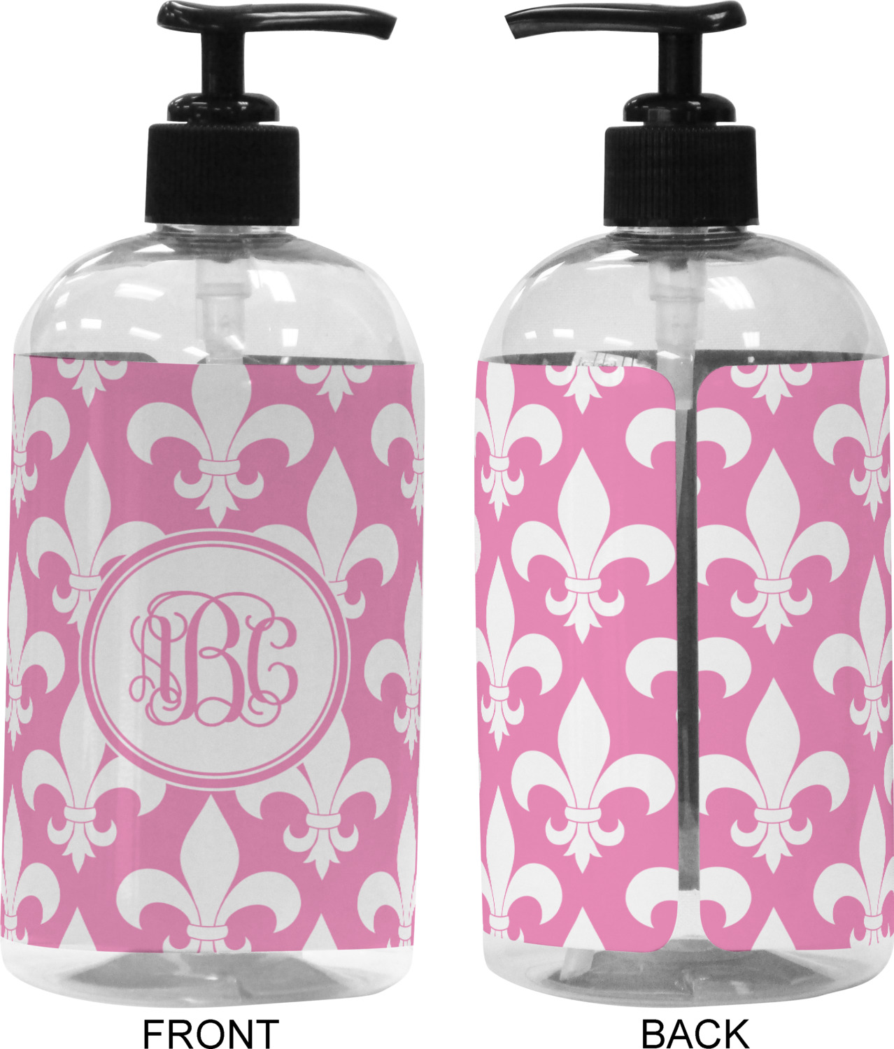 We adhere and wrap your custom printed design around the clear plastic bottle; there is a slight gap at the back for you to see the liquid level. Your design is printed on high gloss vinyl with eco-solvent inks and completely waterproof and will not fade or deteriorate over time. The vinyl is machine cut and adhered by hand to the clear plastic bottle.