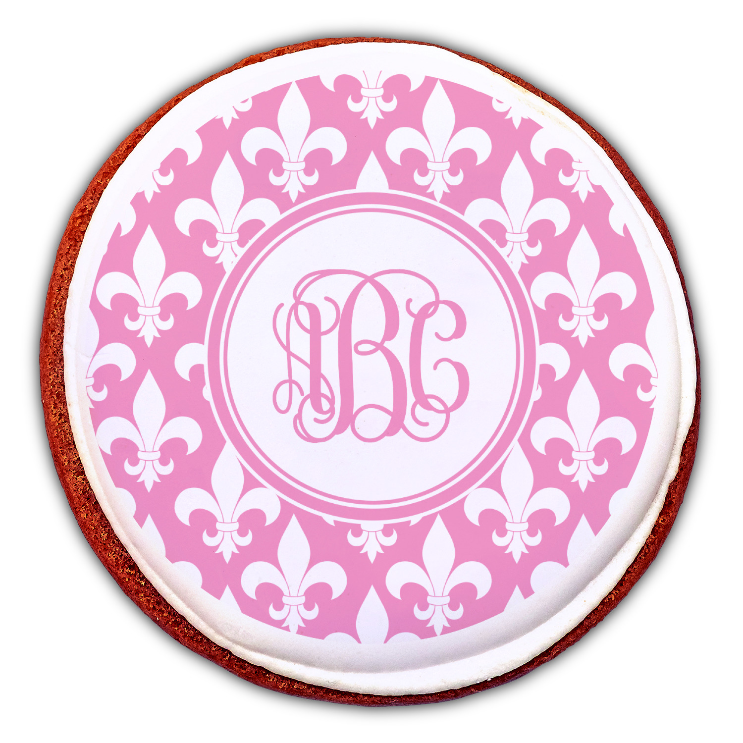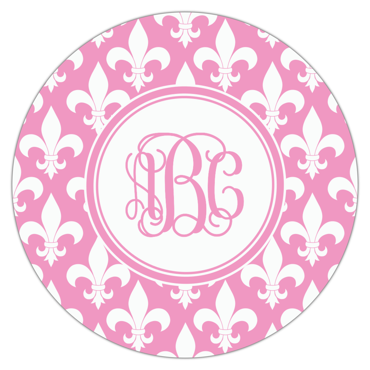 This simple, yet elegant design is fit for any royal, especially the princesses and queens! It has fleur-de-lis in the background with a round label and an interlocking monogram. We offer you a choice of background colors. I think this would look fantastic in purple!