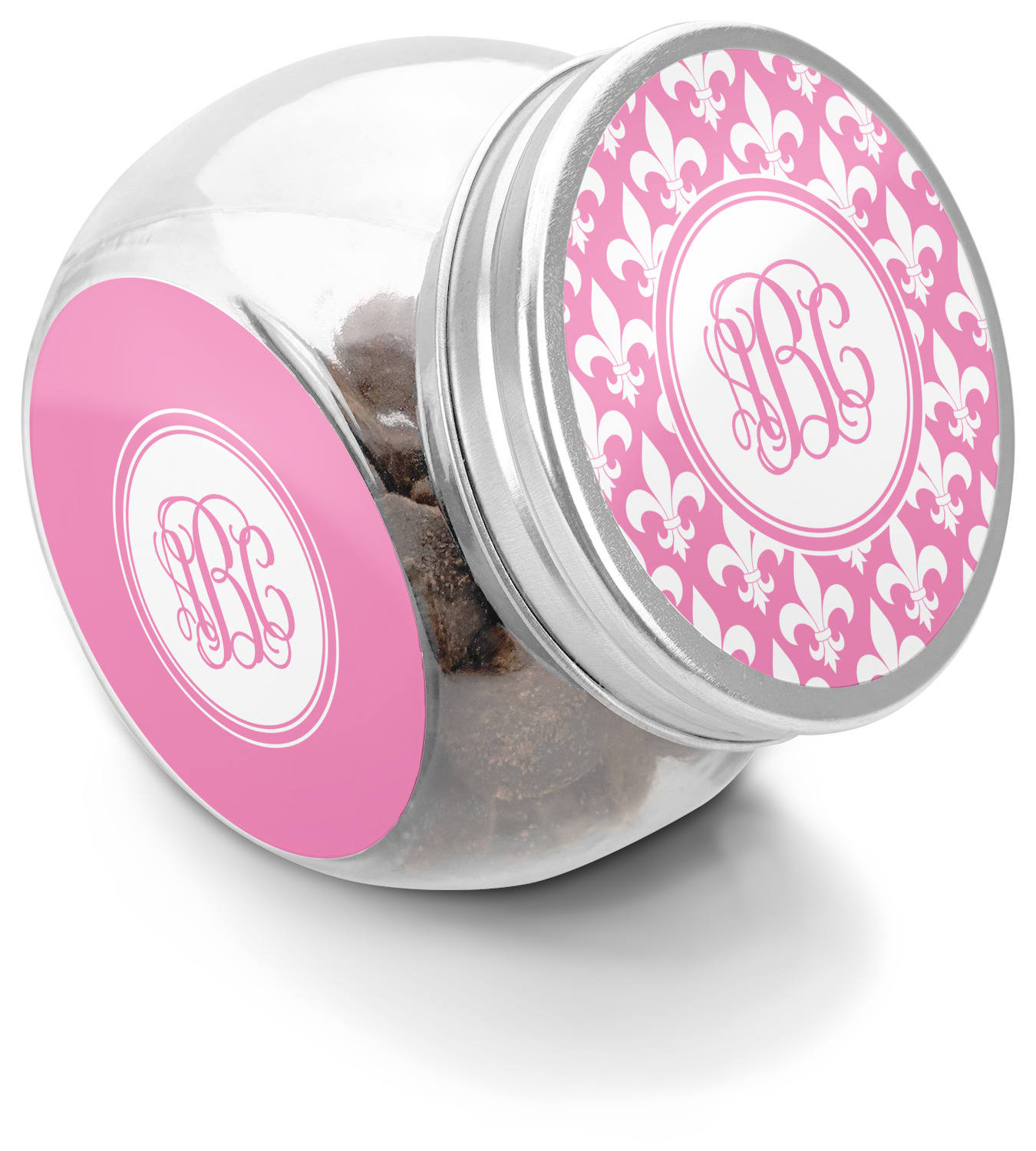 This treat jar is an excellent way to store treats for your favorite canine or feline. Moreover, their delicate, classy appearance makes them a tasteful addition to your countertop's décor. Crafted from clear glass, its unique construction and silver metal, screw-on lid allows for quick and easy access. Three, permanent, vinyl stickers are applied to both sides of the jar and lid, presenting your personalized design. The base of this glass, dog treat jar is 3.4" x 4.75", and the jar stands at 5" tall. Though on the smaller side, this jar is best suited for smaller treats or training treats.