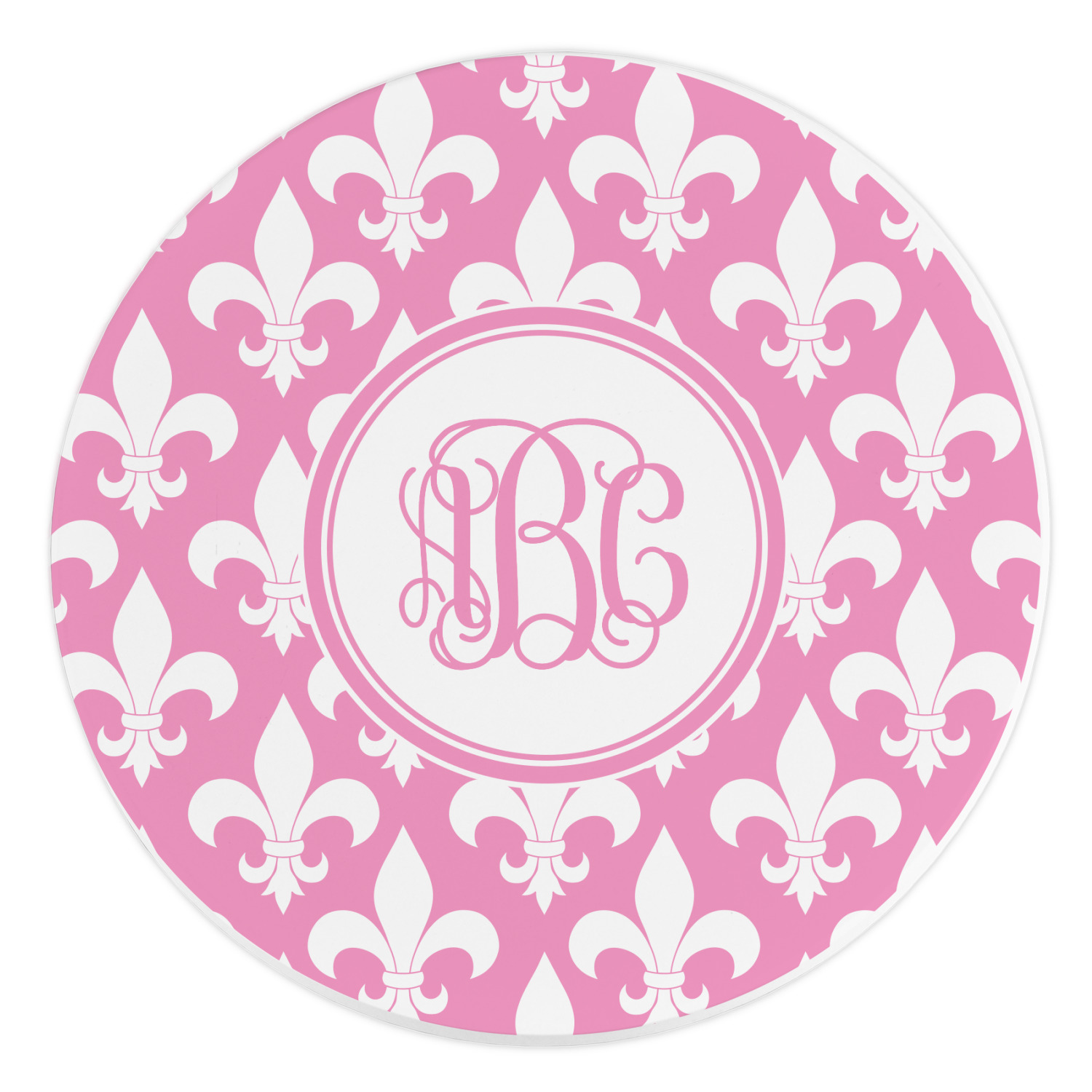 This simple, yet elegant design is fit for any royal, especially the princesses and queens! It has fleur-de-lis in the background with a round label and an interlocking monogram. We offer you a choice of background colors. I think this would look fantastic in purple!