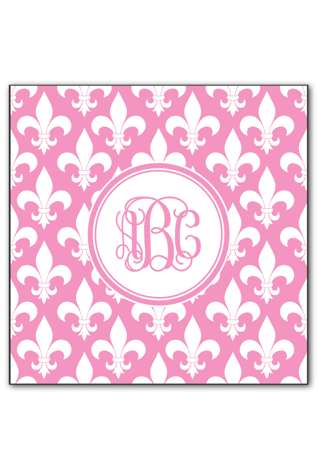 This simple, yet elegant design is fit for any royal, especially the princesses and queens! It has fleur-de-lis in the background with a round label and an interlocking monogram. We offer you a choice of background colors. I think this would look fantastic in purple!