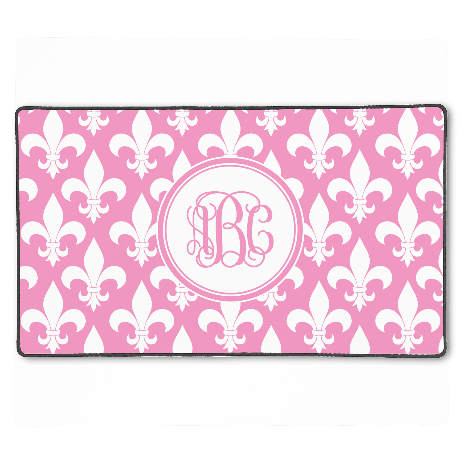 This simple, yet elegant design is fit for any royal, especially the princesses and queens! It has fleur-de-lis in the background with a round label and an interlocking monogram. We offer you a choice of background colors. I think this would look fantastic in purple!