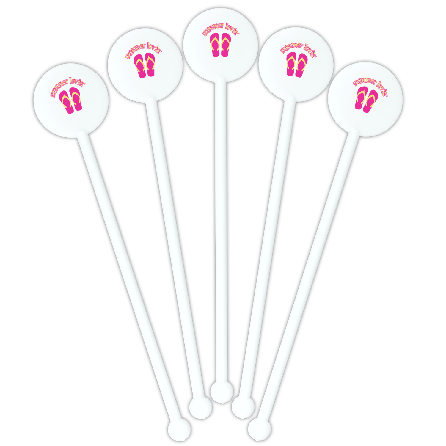 Coastal / Beach Style Designs for 5.5" Round Plastic Stir Sticks - White - Single-Sided