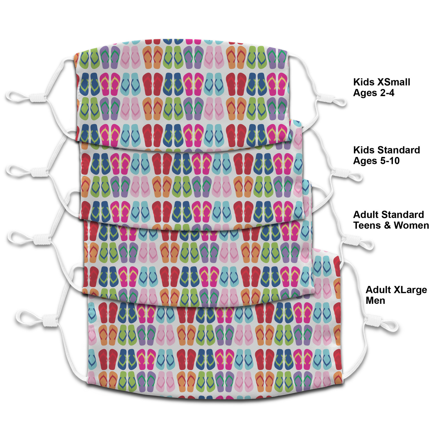 Our cloth face masks are available in 2 two adult sizes standard and extra large. We also have kids face masks available in two sizes - extra small and standard.