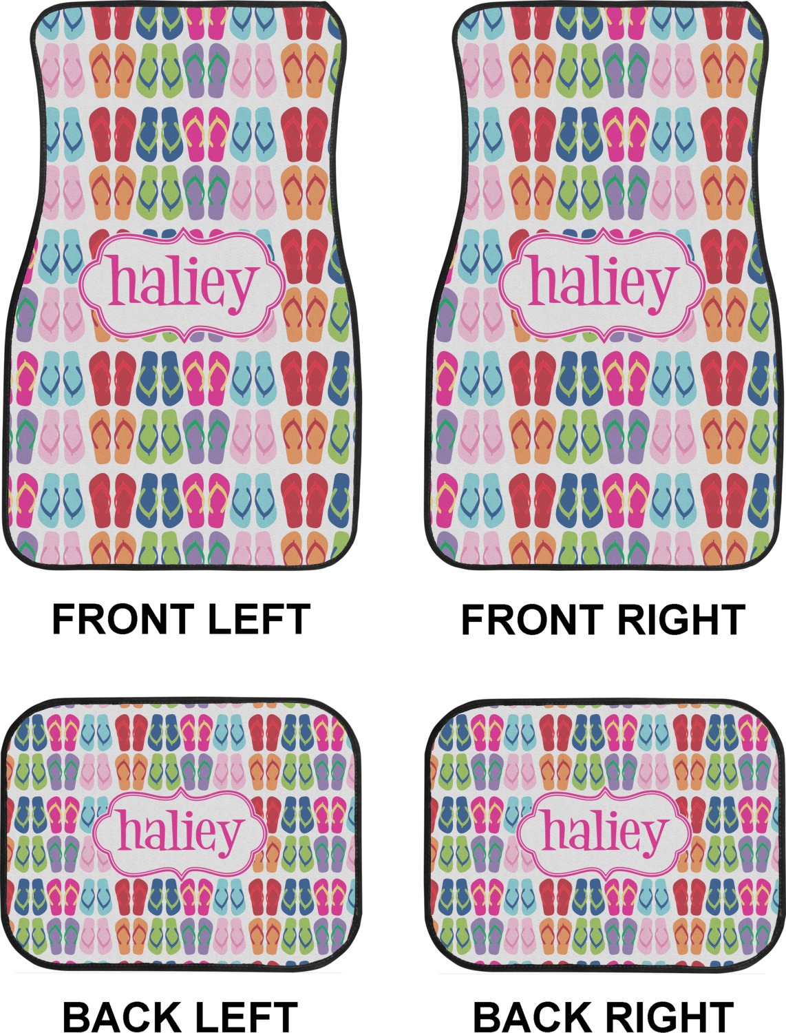 We craft our auto floor mats mats from polyester, apply a black finish to the edges, and lined at the bottom to prevent slippage. These mats protect your floors from grass, mud, and any accidental spills. We display your personalized design on the front face of each mat. The sizes of these car floor liners are standardized to provide a versatile fit for all vehicles. The front rows car mats measure at 17 by 26.5 inches, while the back rows measure at 17 by 13 inches. We sell three packages of car floor mats. You can purchase a pair of front row car mats, a pair of back row car mats, or a set of front row and back row car mats. To make an informed purchase, we recommend measuring the surface area of your car floors.