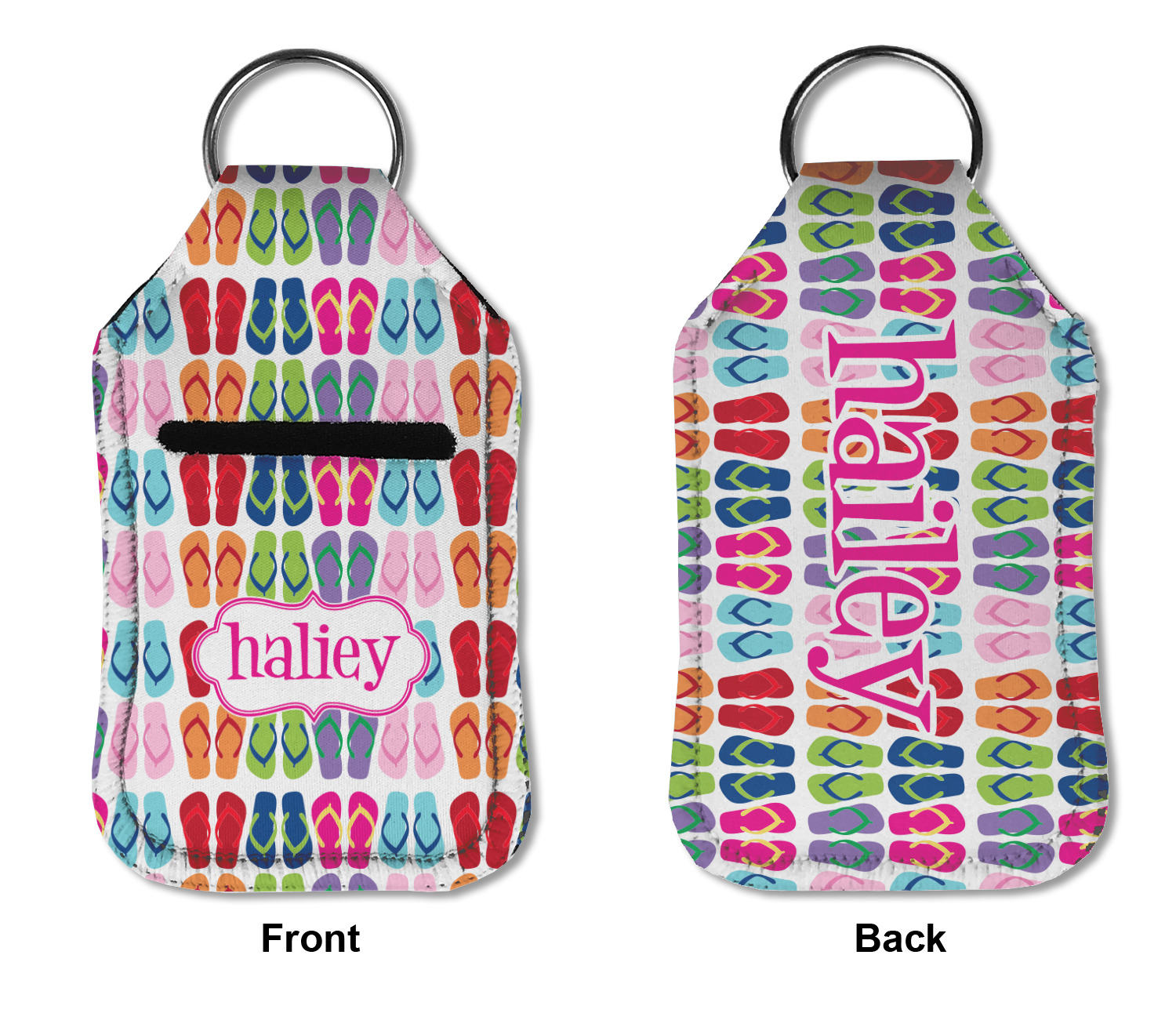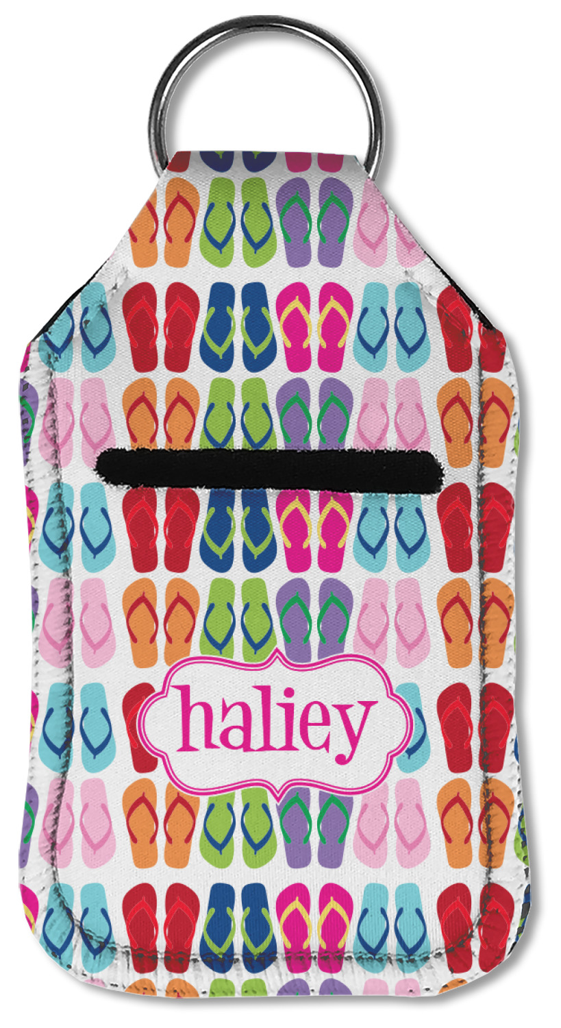 Each hand sanitizer holder comes with its own empty travel-sized, refillable hand sanitizer sure to fit snug in your customized sanitizer case! Our hand sanitizer cases are a durable, yet soft neoprene material sure to last any daily activities or travel agenda. Customize and personalize a hand sanitizer bottle holder with one of our two sizes - small (4.25" x 2.25") or large (5.5" x 2.5"). Each travel sanitizer holder comes with a keyring for attachment on bags, keys, or more!