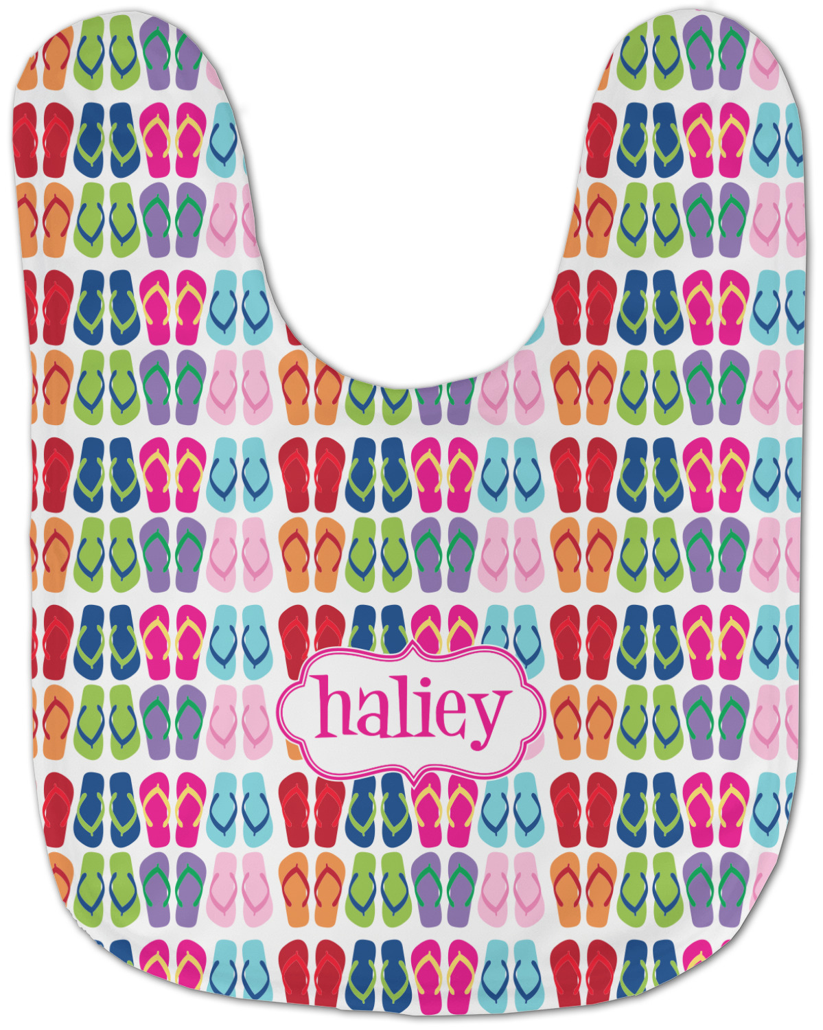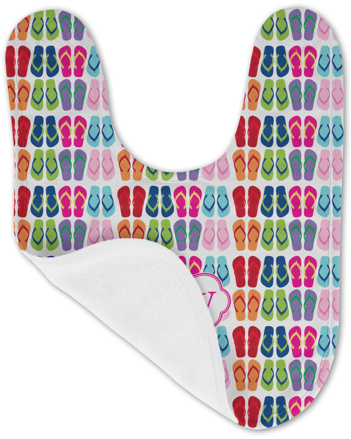 Made of soft polyester, each customizable bib hugs comfortably around the neck to catch every drip and drool. Each bib design is printed with baby-safe ink and finished with a secure stitch pattern and velcro clasp. We carry two customizable bib styles -Microfiber Velour and Jersey Knit.