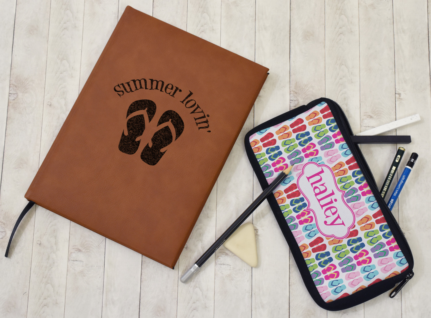 The faux leather covers are a rich cognac / rawhide color and can be customized with your design. From a simple name or monogram or a logo to a detailed mandala - the choice for customization & personalization is truly yours. Customize one of our designs or upload your own.