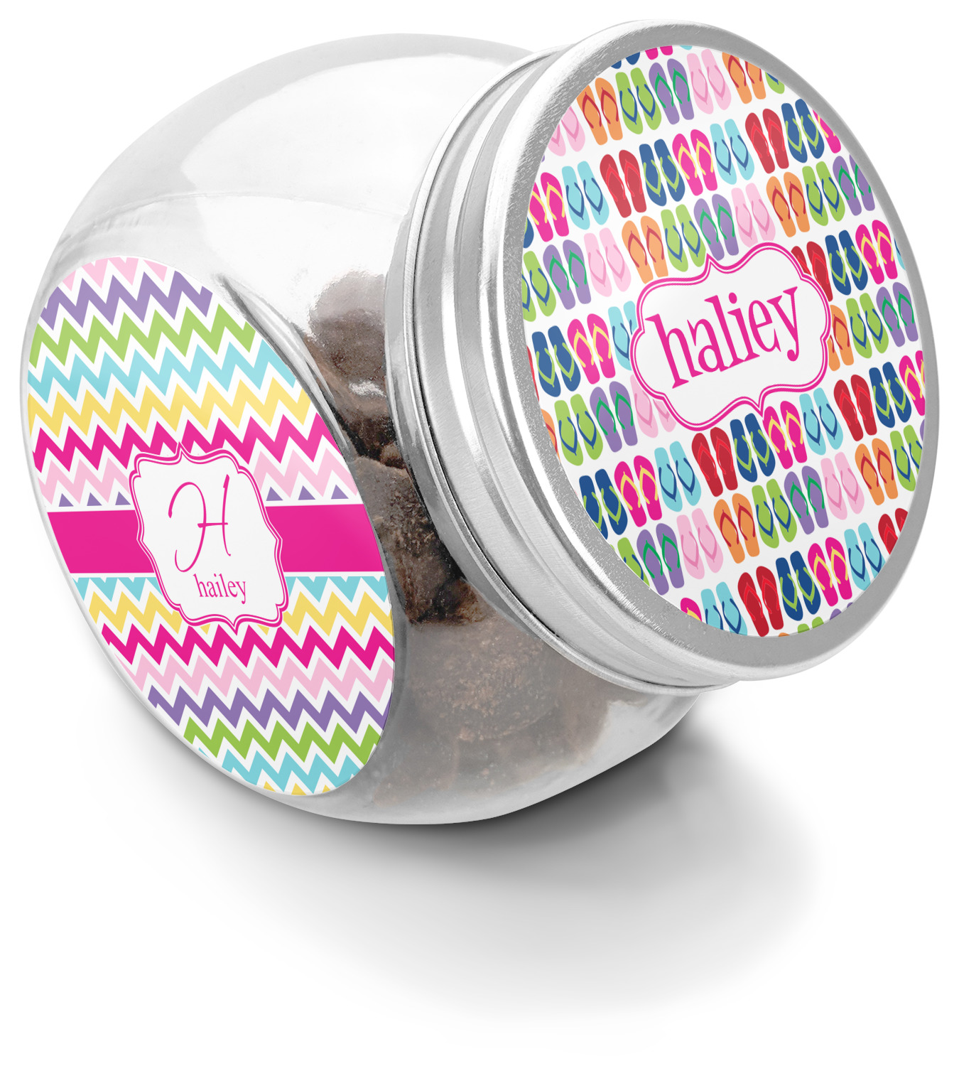 Bright and multicolored, this design goes with everything! Add the personalization of your choice to the center label.