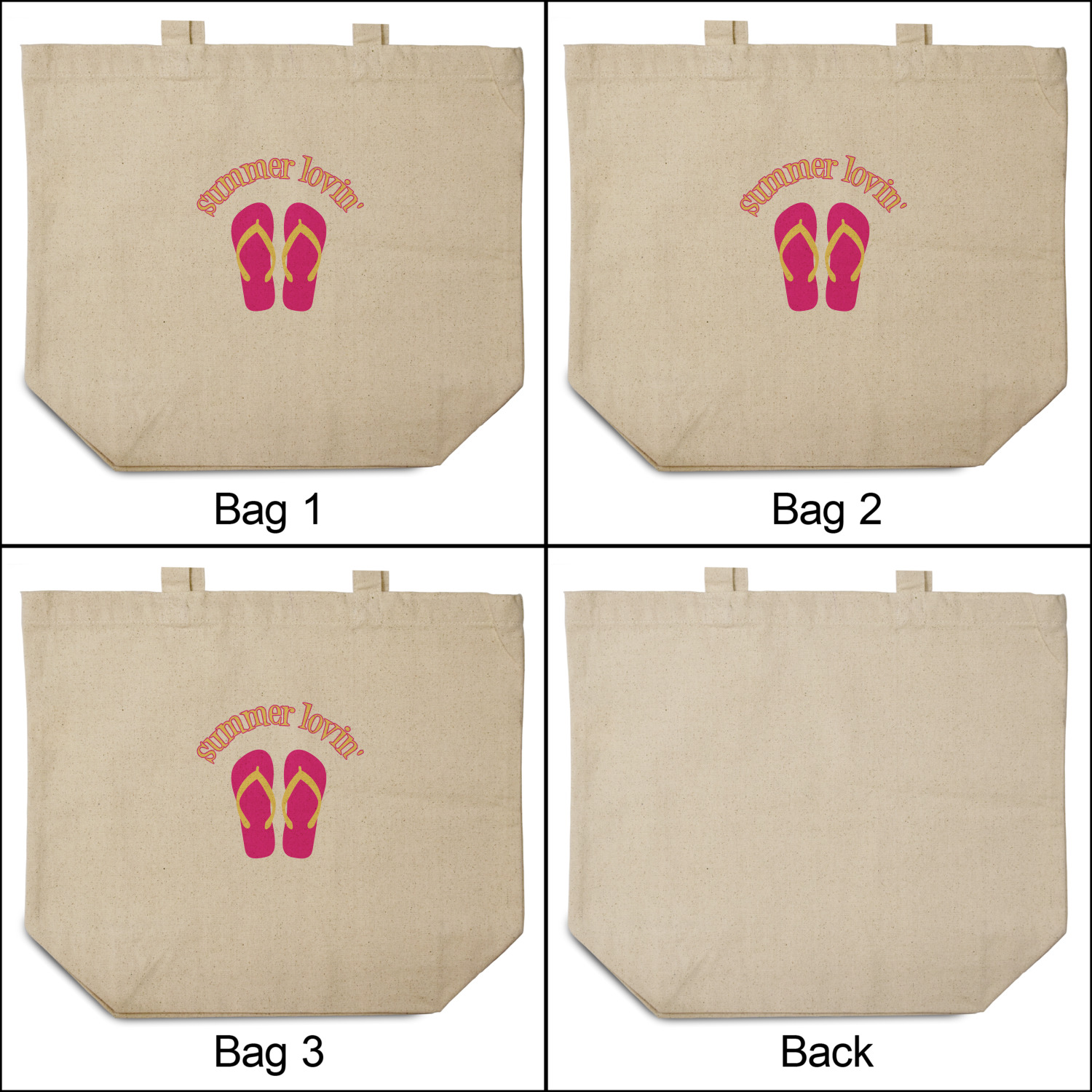 These cotton totes are washable and easy to care for, and they can be folded flat for storage. Your artwork, logo, or photo is printed in full color directly on the cotton tote in the front.