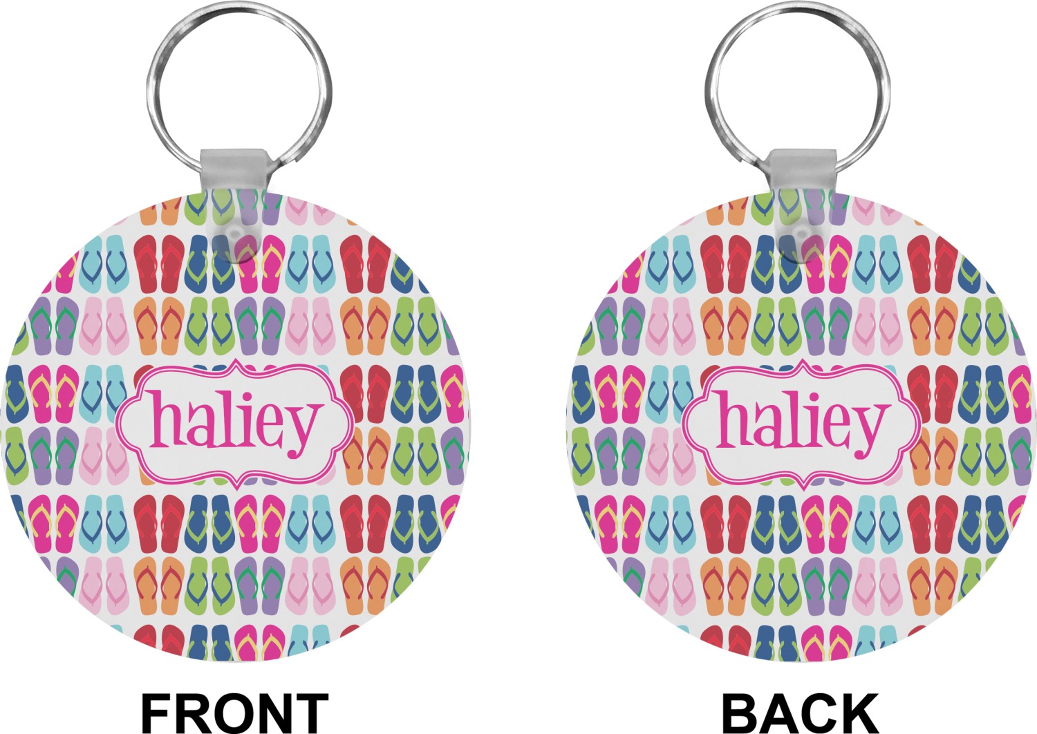 Our personalized keychains attach to the included metal, split key ring with a plastic, removable snap. Since a metal ring is included with your purchase, you have the liberty to keep your keys together on the ring, with or without your unique keychain. We offer this keychain in three different shapes: circle, heart, or diamond. We print your personalized design(s) on both sides of the key chain, and the surface has a glossy, reflective finish that only emphasizes your design. Each keychain is approximately 2.25 by 2.25 inches.