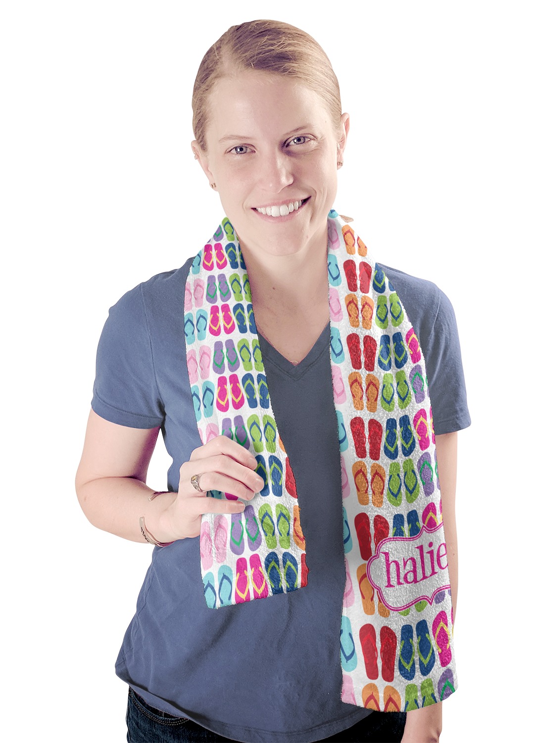 Go to the gym in style with a personalized sports towel. Whether you are running, doing strength exercises, or playing a sport, you need a good towel to wipe away your perspiration. Don't settle for a boring towel! Get one that will be sure to catch eyes.