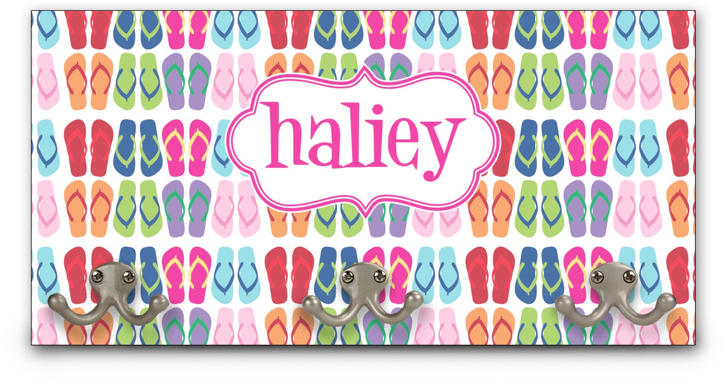 This coat rack is the perfect way to add some personality to your wall or entryway. The board is made of a strong maple that is approximately 16" x 8". The three 2-prong hooks are a sturdy metal that have three screws attaching them to the board. Your design is printed right onto the front of the board while the back and sides are a simple black.