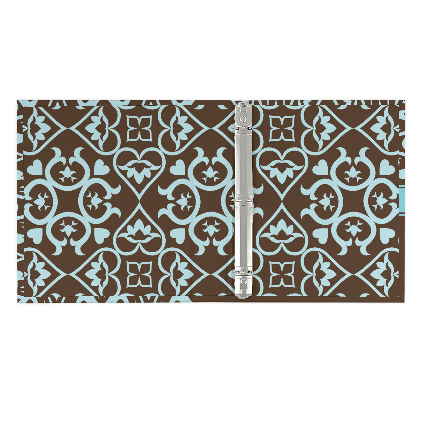 Made from a sturdy cardboard base with a full high quality canvas textured vinyl wrap with the design of your choice. Unlike our standard 3-ring binder with the full wrap design your artwork wraps from the front and back and into the inside of the binder.