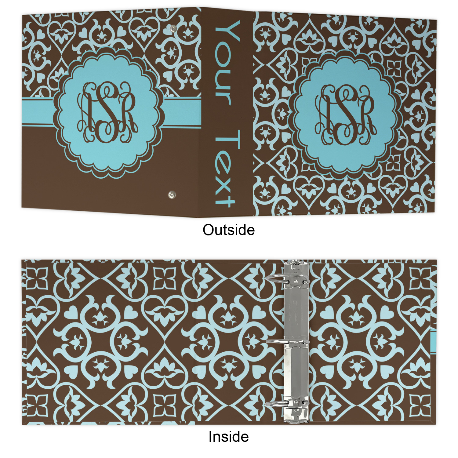 The outside is printed in 3 sections - front cover, spine and back cover - while the inside is printed in a full single print of your choice. The inside boasts a high quality nickel plated binder mechanism with a trigger opening function and is secured to the cardboard binder with posts and screws.